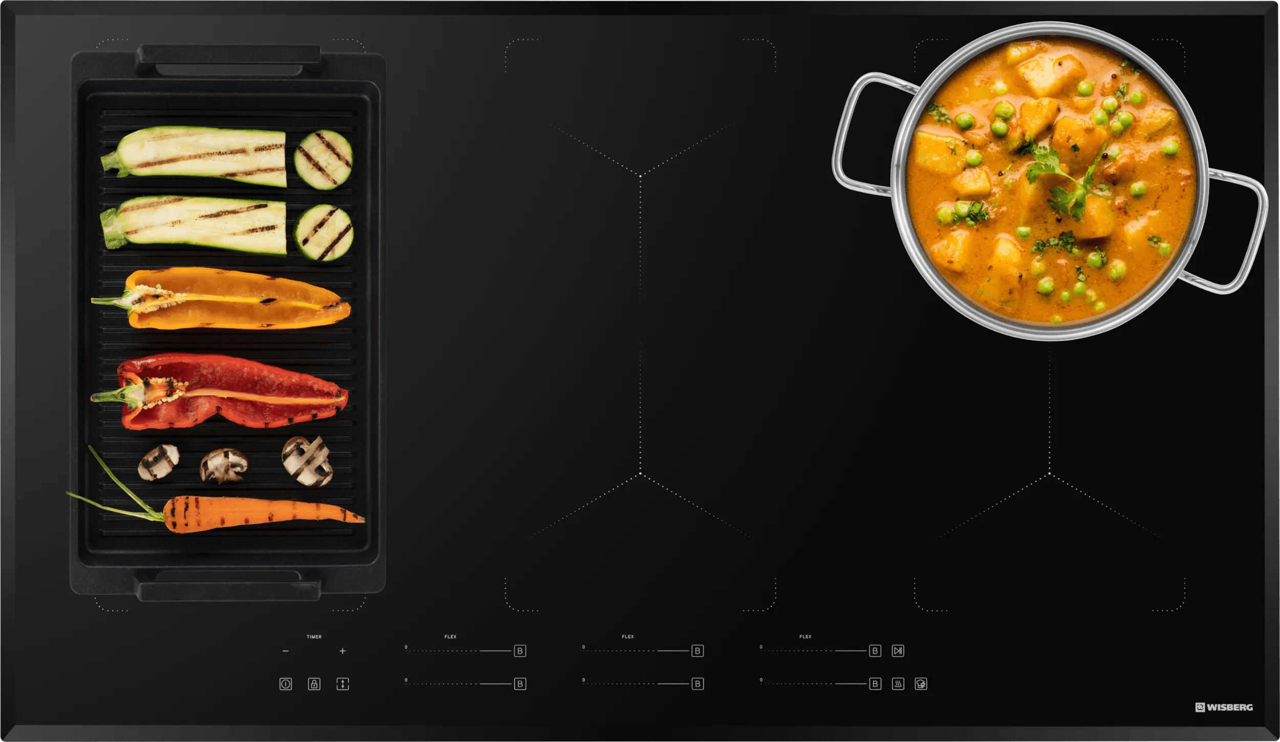 Met de Wisberg WBBC690FZF3 inbouw inductie kookplaat kook en gril je gemakkelijk verschillende gerechten tegelijk. De kookplaat heeft 3 flexibele kookzones. Zo heb je ruimte voor een grote stoofpan, een grillplaat en een vispan tegelijk. Je kiest uit 15 kookstanden, zodat je altijd de juiste stand gebruikt voor jouw gerecht. Gebruik je bepaalde instellingen vaker? Met de geheugenfunctie sla je je favoriete instellingen op, zodat je ze de volgende keer meteen kiest. Met de sliderbediening wissel je gemakkelijk van kookstand. Zijn je groenten al klaar, maar is je vlees nog niet gaar? Met de warmhoudfunctie blijft je eten op temperatuur zonder dat het doorgaart of aanbrandt. De overkookbeveiliging schakelt de kookplaat automatisch uit als je pan overkookt.