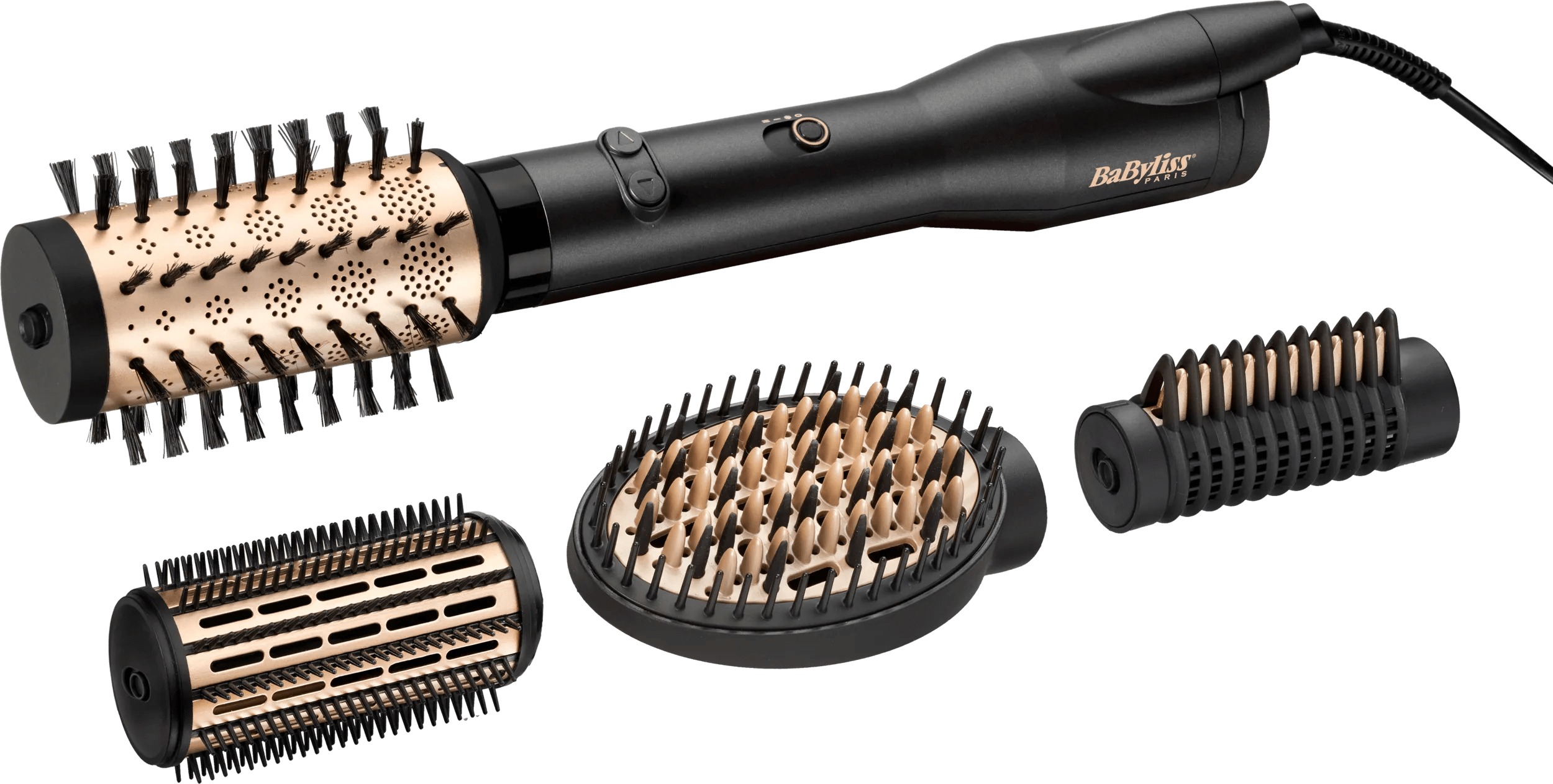 Creëer verschillende kapsels met de BaByliss Big Hair Luxe AS970E. Bij de krulborstel krijg je 4 opzetstukken, waarmee je kiest voor golvend, krullend of steil haar. Dankzij de roterende beweging van de borstel maak je direct volume in je haar, waarbij je de draairichting zelf instelt. Tijdens het modelleren van je haar, droog je jouw haar tegelijkertijd. Handig, zo sla je 2 vliegen in één klap. De ionische technologie voorkomt statisch en pluizig haar. De keramische technologie beschermt je haar daarnaast tegen de hitte van de borstel. De föhnborstel heeft 2 verschillende blaasstanden, 2 temperatuurstanden en een cool shot. Met deze koude stand fixeer je jouw haar zodat het langer in model blijft zitten.