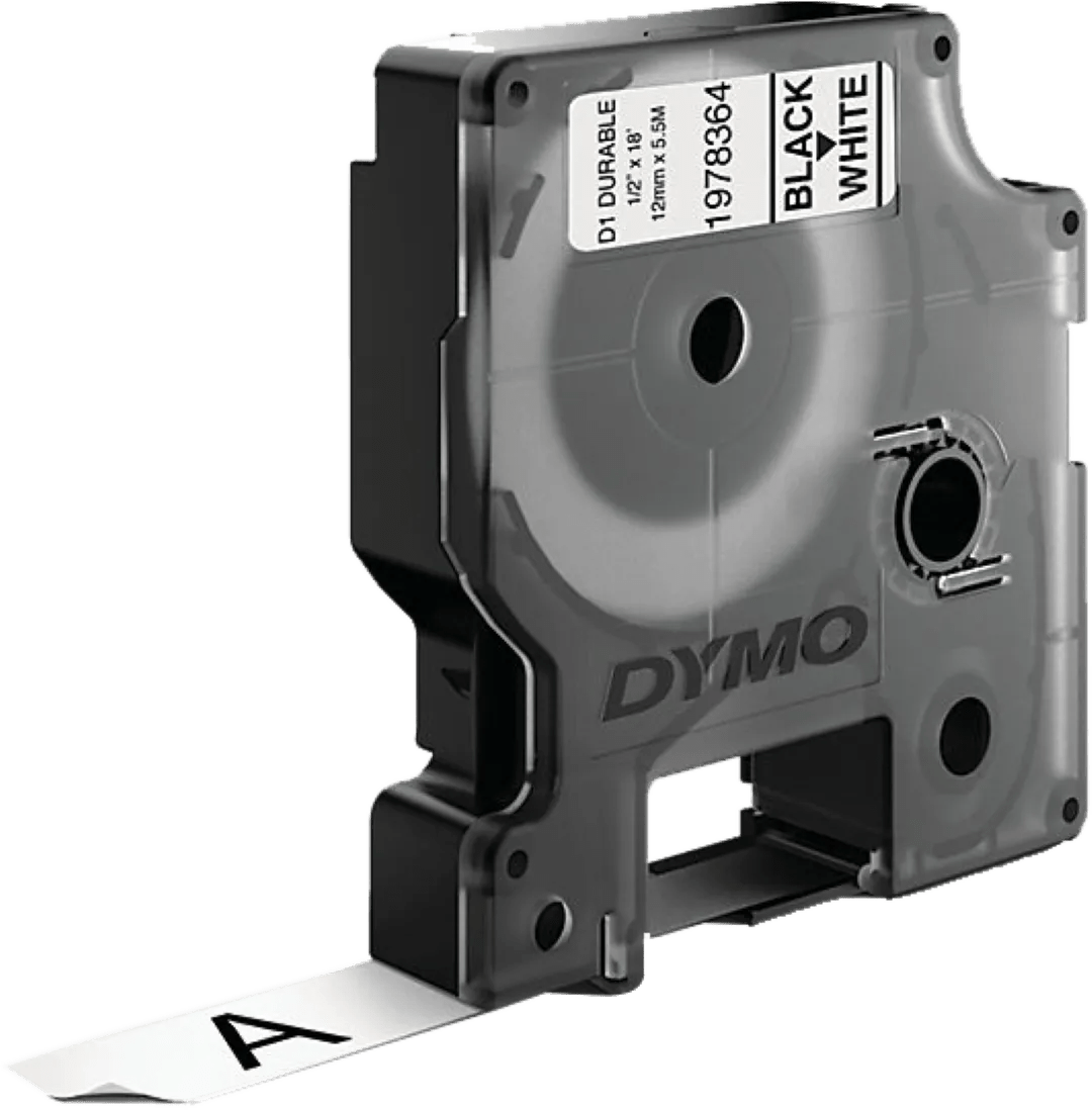 DYMO Duurzame D1 Tape 12 mm x 5,5 m Zwart Wit Label