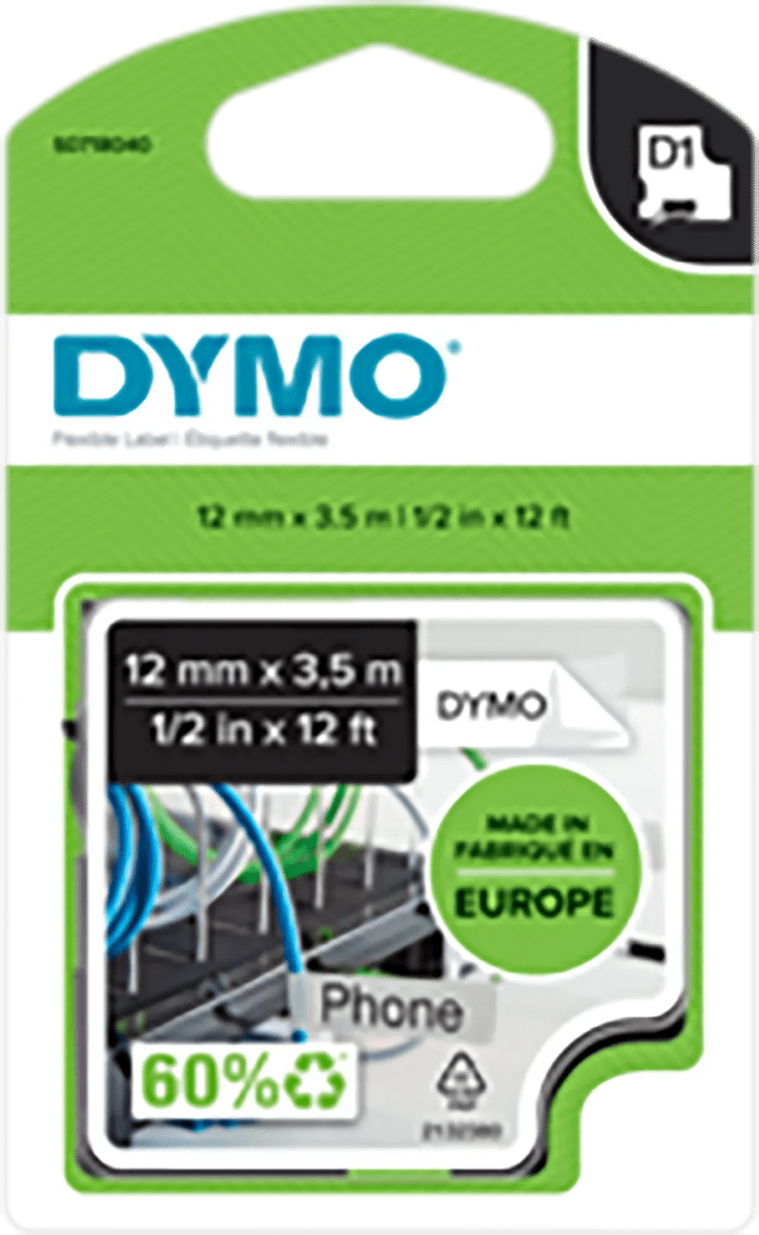 DYMO Flexible Nylon 12mm x 3,5m Zwart Wit Labels
