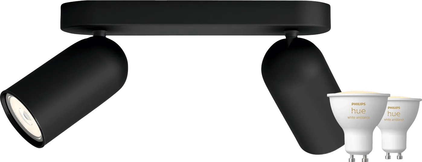Philips Pongee opbouwspot – 2 spots – zwart + Philips Hue White Ambiance GU10 (2x)