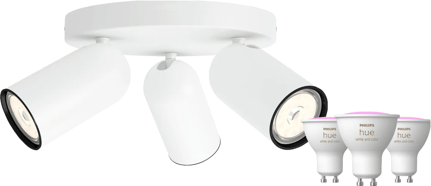 Philips Pongee opbouwspot – 3 spots – wit + Philips Hue White and Color GU10 (3x)