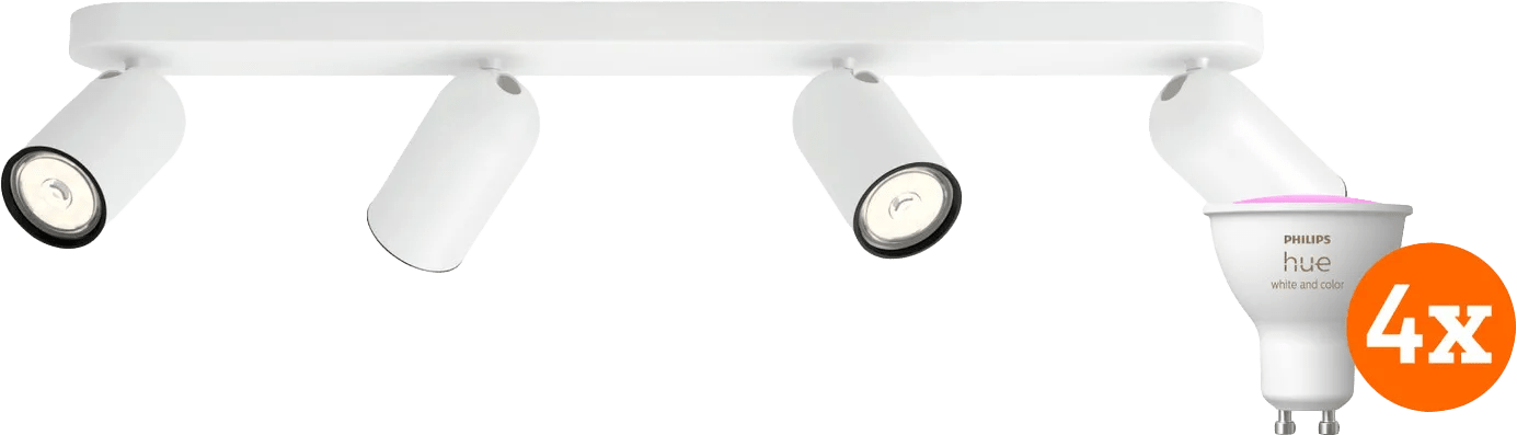Philips Pongee opbouwspot - 4 spots - wit + Philips Hue White and Color GU10 (4x)