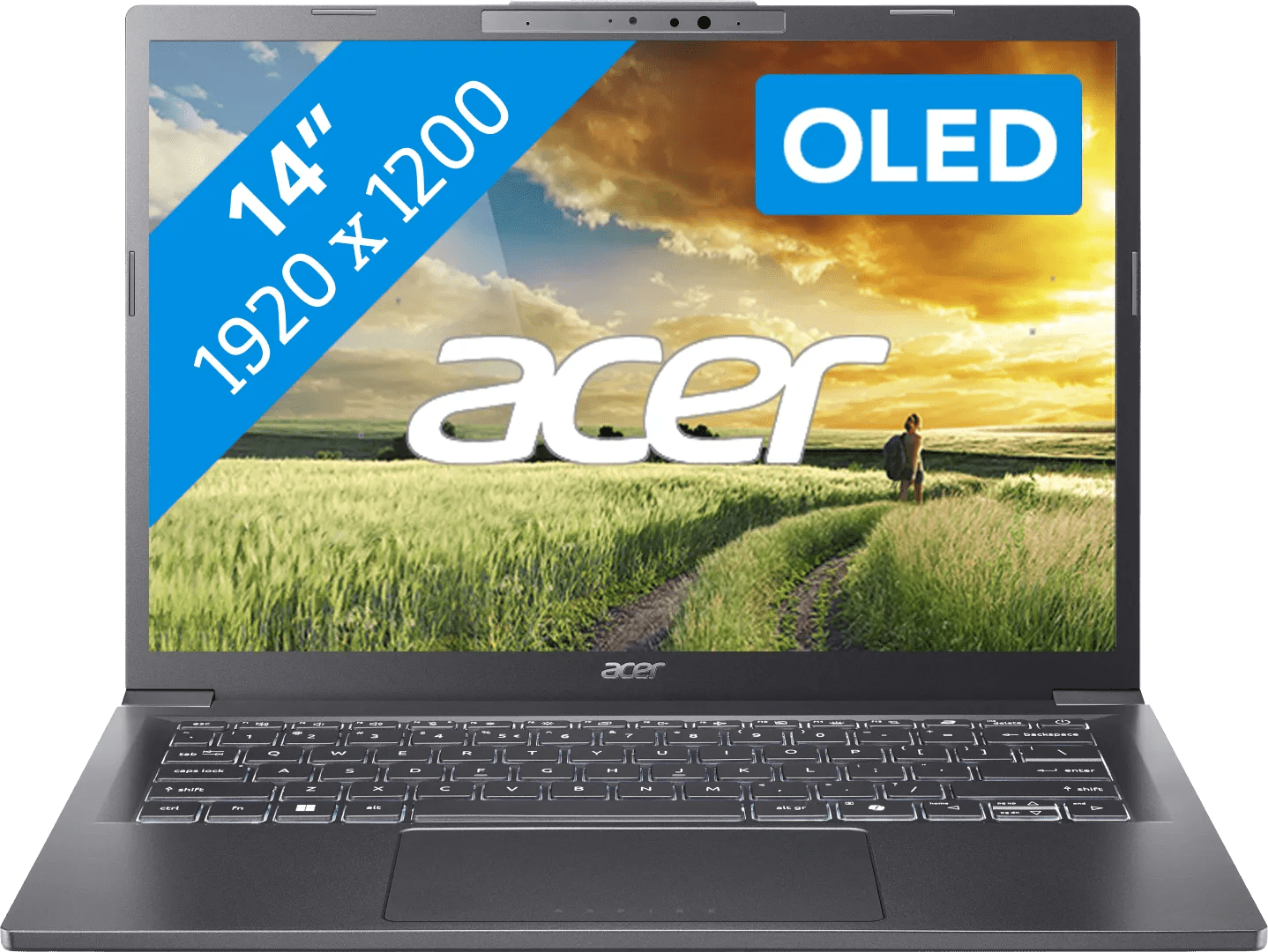 Met de Acer Aspire 14 AI A14-52M-56CK geniet je van realistische kleuren en beter contrast. Het OLED scherm geeft helderdere kleuren en laat meer details in schaduwen zien. Je ziet hierdoor beelden die levendig en natuurgetrouw ogen. Deze laptop heeft een 14 inch scherm. Je neemt hem makkelijk mee op reis, omdat hij compact en licht is. Je ziet minder details dan op grotere schermen, maar je werkt overal comfortabel. Het verlichte toetsenbord laat licht door achter de toetsen. Hierdoor vind je snel de juiste toetsen, ook in het donker of ’s avonds. Je werkt daardoor moeiteloos in iedere omgeving.