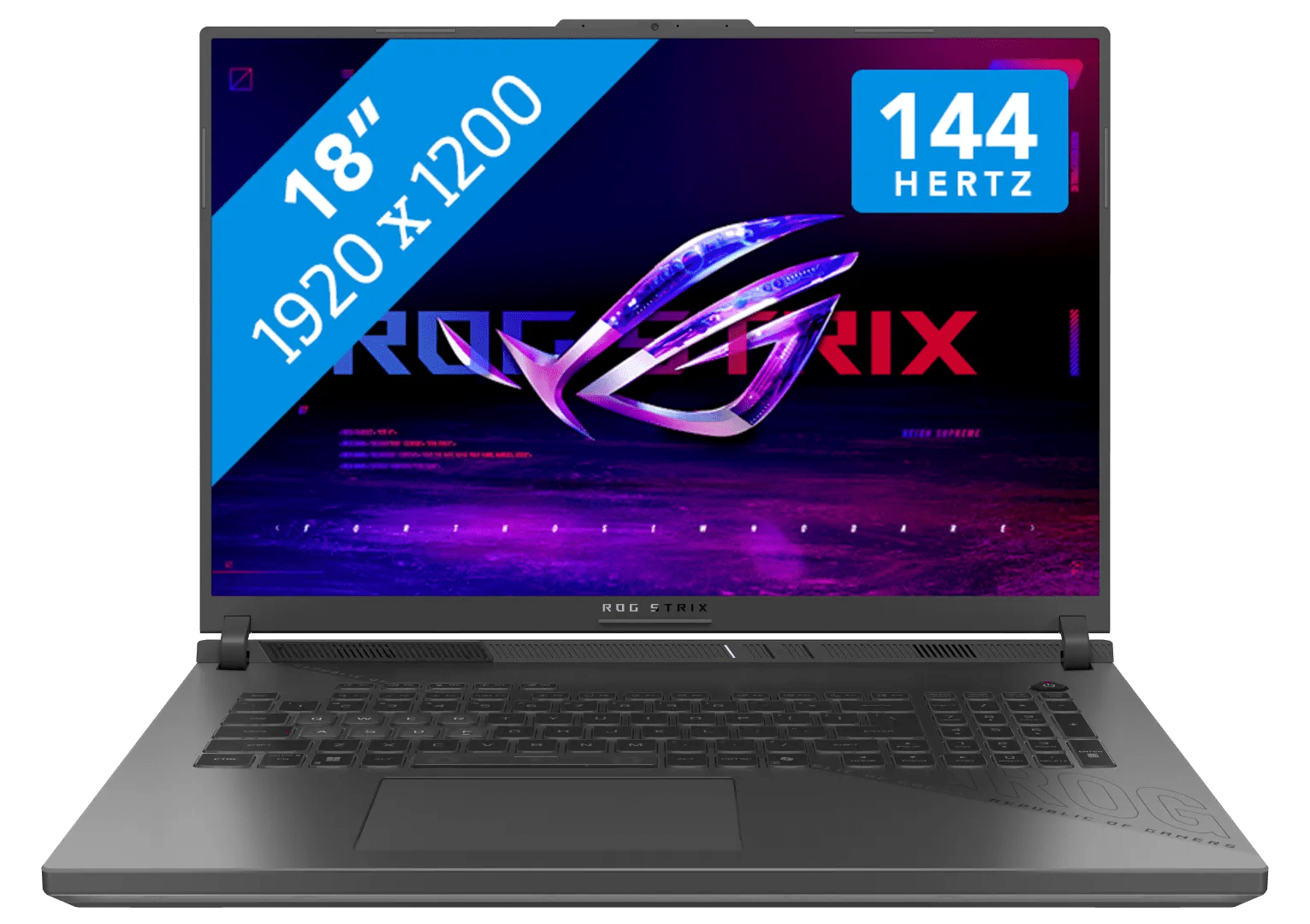 Speel je favoriete middelzware games en stel je 18 inch ASUS ROG Strix G18 G814PM-S8051W gaming laptop in naar jouw wens. Games speel je in full hd op 60 frames per seconde, ook zonder DLSS. Daarnaast maak je 3D designs en ontwerp je game animaties. Daar zijn de NVIDIA GeForce RTX 5060 videokaart, de 7000 serie AMD Ryzen 9 processor en het 16 gigabyte DDR5 werkgeheugen krachtig genoeg voor. Je mist geen enkele snelle vijanden dankzij de 144 hertz verversingssnelheid. Ook geniet je van meer schermruimte op het grote 18 inch scherm met de 16:10 beeldverhouding. Zo verlies je jouw tegenstander niet uit het oog. Daarnaast game je in het donker in stijl verder, want je past het RGB verlichte toetsenbord in 4 zones aan. Verder geniet je van zuiverder geluid dankzij de 2 Dolby Atmos luidsprekers. Ben je klaar met gamen? Dan bewaar je jouw games en andere bestanden op de ruime 1 terabyte SSD. Tot slot sluit je een ethernetkabel aan voor een snelle en stabiele internetverbinding. Let op: sluit de oplader altijd aan tijdens het gamen, anders haal je minder goede prestaties en is de batterij binnen een paar uur leeg. Advies van onze gaming laptop specialist: Foto's bewerken: geschikt Video's bewerken: geschikt Virtual reality: geschikt Streaming: geschikt Game design en 3D animatie: geschikt Ben je benieuwd of de GeForce RTX 5060 videokaart in deze laptop je favoriete game draait op hoge instellingen (60 fps)? Kijk dan in onderstaande lijst of deze laptop voldoet aan de aanbevolen systeemeisen: League of Legends: geschikt Fortnite: geschikt EA Sports FC 25: geschikt Call of Duty: Modern Warfare III: geschikt Hogwarts Legacy: geschikt Elden Ring: ongeschikt, minimaal RTX 5070/4070 videokaart nodig Microsoft Flight Simulator: ongeschikt, minimaal RTX 5070/4070 videokaart nodig Je krijgt binnen 24 uur na aankoop een e-mail met een persoonlijke vouchercode voor 1 jaar gratis Norton 360 Deluxe antivirus, t.w.v. &euro: 94,99.