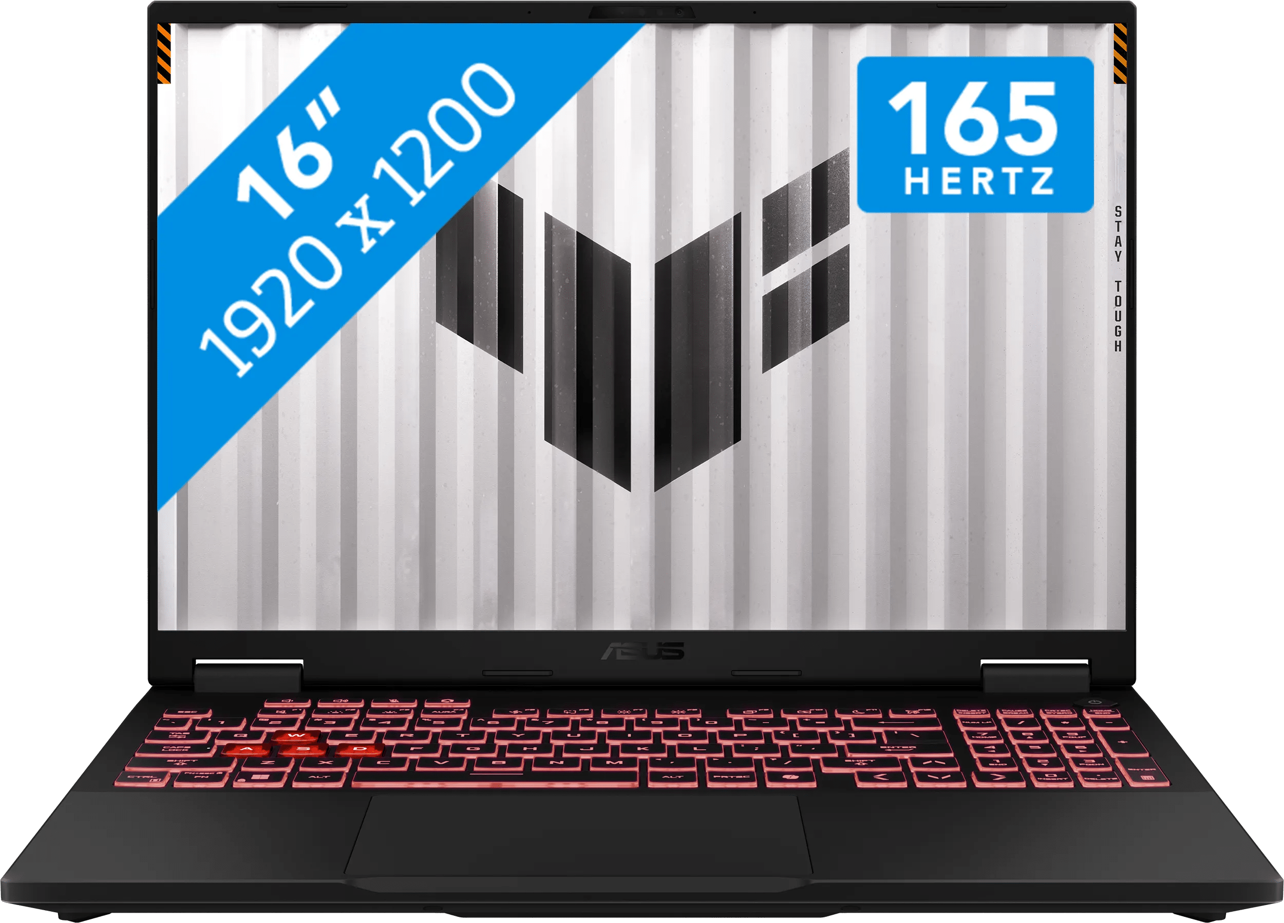 Versla al jouw vijanden en speel soepel grote, zware games met de 16 inch ASUS TUF Gaming A16 FA608UP-RV097W gaming laptop. Je speelt soepel grote, zware games op 60 frames per seconde in full hd resolutie, ook zonder DLSS. Stream tegelijk je gameplay via Twitch naar al je volgers. Daarnaast bewerk je soepel grote videobestanden en maak je industriële ontwerpen. Hier zijn de NVIDIA GeForce RTX 5070 videokaart, de 200 serie AMD Ryzen 7 processor en het 32 gigabyte DDR5 werkgeheugen sterk genoeg voor. Games bewaar je op de ruime 1 terabyte SSD. Tijdens het gamen zie je snelle vijanden vloeiend voorbij komen door de 165 hertz verversingssnelheid. Daarnaast houd je goed overzicht van je game door de grotere 16:10 beeldverhouding. In de avond game je gerust verder, want door het rood verlichte toetsenbord zie je de belangrijkste toetsen snel zitten. Je breidt het werkgeheugen en de opslag van deze laptop uit tot 64 gigabyte DDR5 werkgeheugen en 2 terabyte SSD. Dat maakt hem toekomstbestendiger. Let op: sluit de oplader altijd aan tijdens het gamen, anders haal je minder goede prestaties en is de batterij binnen een paar uur leeg. Advies van onze gaming laptop specialist: Foto's bewerken: geschikt Video's bewerken: geschikt Virtual reality: geschikt Streaming: geschikt Game design en 3D animatie: ongeschikt, minimaal een i9/Ryzen 9 processor nodig Ben je benieuwd of de GeForce RTX 5070 videokaart in deze laptop je favoriete game draait op hoge instellingen (60 fps)? Kijk dan in onderstaande lijst of deze laptop voldoet aan de aanbevolen systeemeisen: League of Legends: geschikt Fortnite: geschikt EA Sports FC 25: geschikt Call of Duty: Modern Warfare III: geschikt Hogwarts Legacy: geschikt Elden Ring: geschikt Microsoft Flight Simulator: geschikt Je krijgt binnen 24 uur na aankoop een e-mail met een persoonlijke vouchercode voor 1 jaar gratis Norton 360 Deluxe antivirus, t.w.v. &euro: 94,99.