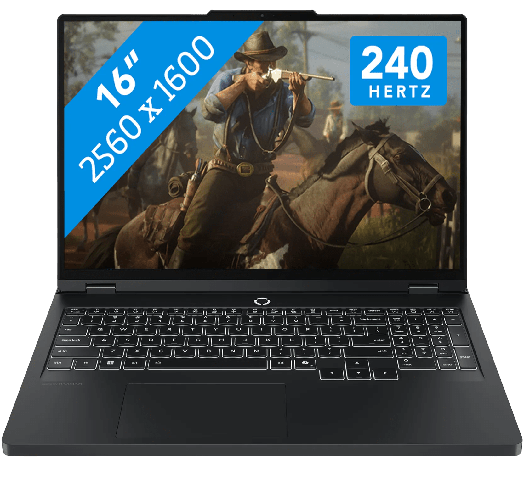 Je mist geen enkel detail tijdens snelle games en je speelt in het donker in stijl verder met de 16 inch Lenovo Legion Pro 5 OLED 16IAX10H 83LU002BMH gaming laptop. Je speelt grote, zware games soepel op 60 frames per seconde in quad hd resolutie, ook zonder DLSS. Daarnaast stream je jouw gameplay en ontwerp je game designs en 3D animaties met AI in zware programma's. Daar zijn de NVIDIA GeForce RTX 5070 Ti videokaart, de Intel Core Ultra 9 Series 2 processor en het 32 gigabyte DDR5 werkgeheugen sterk genoeg voor. Games en andere bestanden bewaar je op de 1 terabyte SSD. Tijdens het gamen zie je snelle vijanden scherp en vloeiend bewegen door de WQXGA resolutie en de 240 hertz verversingssnelheid. Kleuren zien er levendig en realistisch uit door het OLED paneel. Ben je bij een donkere scène in je game aangekomen? Ook dan mis je geen enkel detail door de DisplayHDR True Black 1000 kleurtechniek. Je gamet 's avonds in stijl verder, want je past het 24 zone RGB verlichte toetsenbord makkelijk aan. Verder sluit je gemakkelijk een internetkabel aan via de ethernetpoort. Zo raak je de online verbinding niet kwijt en game je zonder haperingen verder met je vrienden. Let op: sluit de oplader altijd aan tijdens het gamen, anders haal je minder goede prestaties en is de batterij binnen een paar uur leeg. Advies van onze gaming laptop specialist: Foto's bewerken: geschikt Video's bewerken: geschikt Virtual reality: geschikt Streaming: geschikt Game design en 3D animatie: geschikt Ben je benieuwd of de GeForce RTX 5070 Ti videokaart in deze laptop je favoriete game draait op hoge instellingen (60 fps)? Kijk dan in onderstaande lijst of deze laptop voldoet aan de aanbevolen systeemeisen: League of Legends: geschikt Fortnite: geschikt EA Sports FC 25: geschikt Call of Duty: Modern Warfare III: geschikt Hogwarts Legacy: geschikt Elden Ring: geschikt Microsoft Flight Simulator: geschikt Je krijgt binnen 24 uur na aankoop een e-mail met een persoonlijke vouchercode voor 1 jaar gratis Norton 360 Deluxe antivirus, t.w.v. &euro: 94,99.