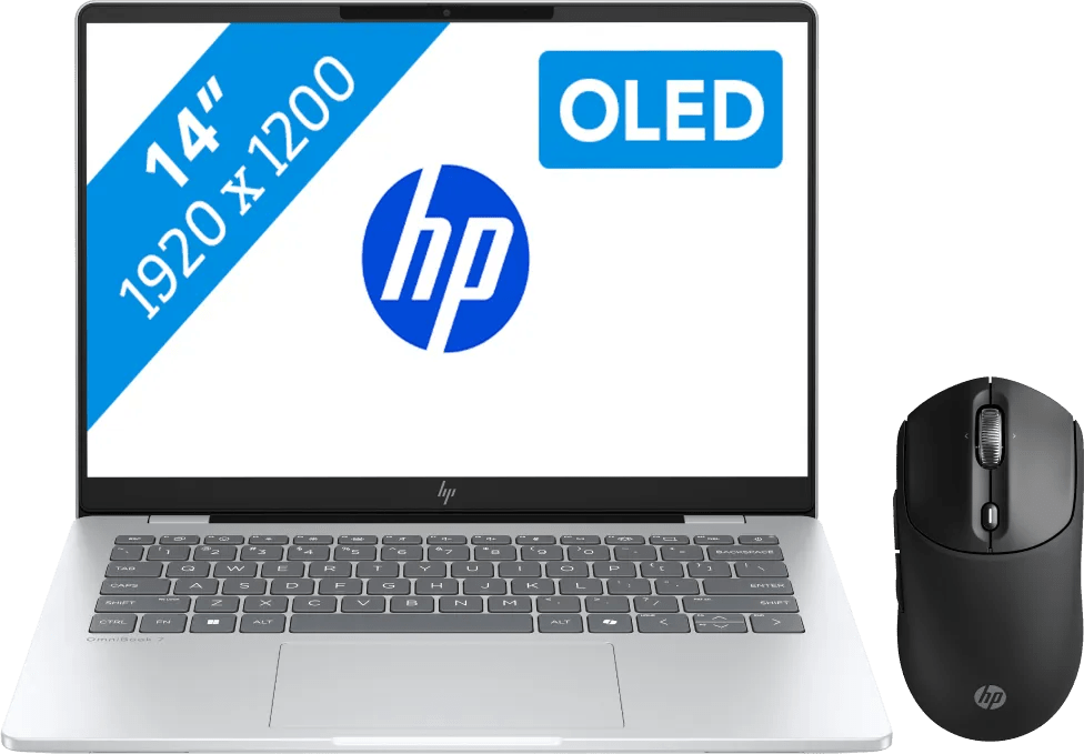 HP OmniBook 7 OLED Copilot+ PC 14-fr0970nd + HP 700 Oplaadbare Draadloze Muis
