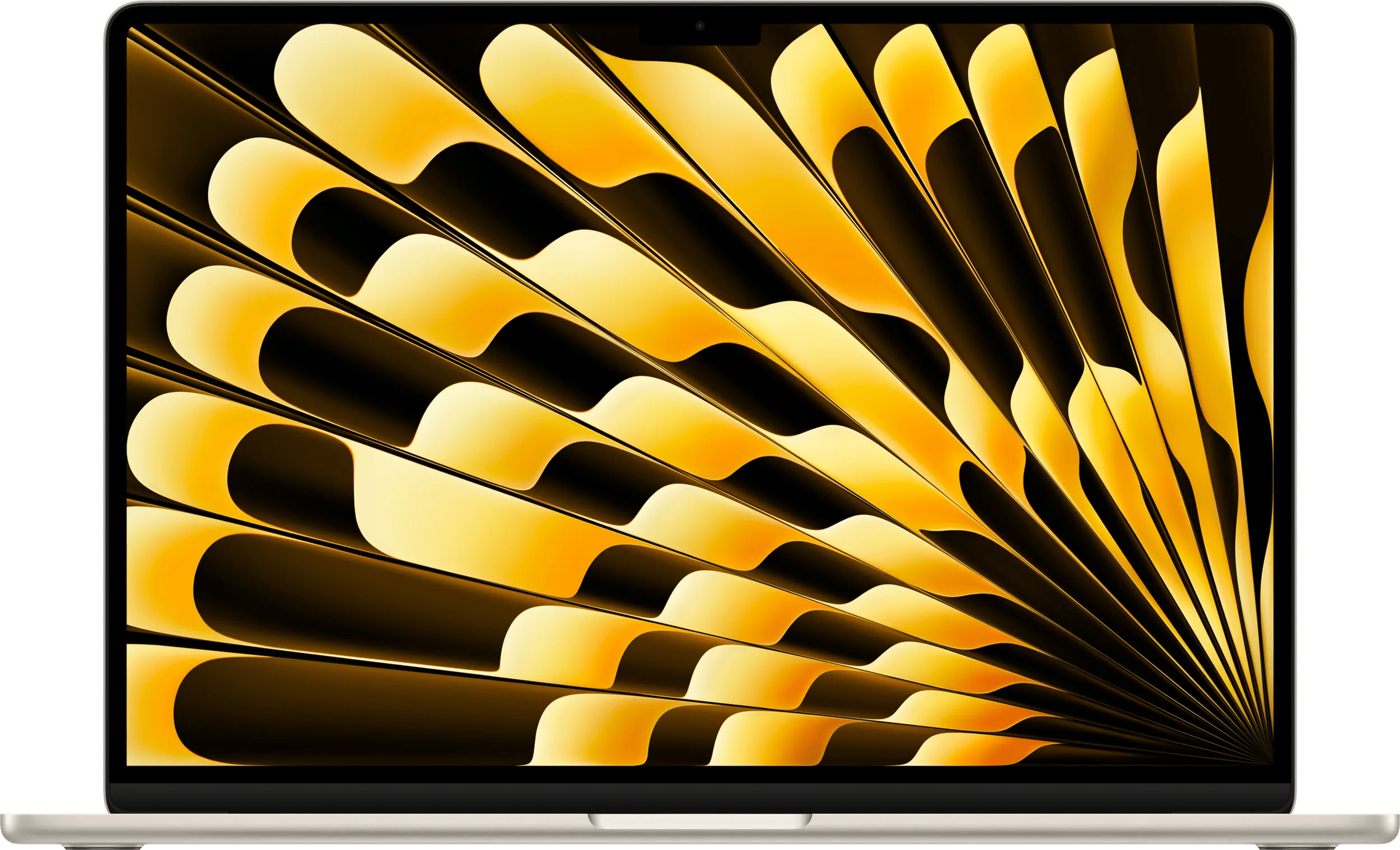 Met Apple MacBook Air 15 inch (2025) M4 (10 core CPU/10 core GPU) 24GB/512GB Sterrenlicht bewerk je soepel foto's en video's in programma's als Adobe Photoshop en iMovie. Hier is de Apple M4 chip, het 16 gigabyte werkgeheugen en de 16 core NPU krachtig genoeg voor. Je voert ook soepel dagelijkse taken uit. Surf snel op Safari en schrijf teksten in Pages. Doe dit waar je maar wilt, want door het lage gewicht van 1,51 kilogram en de batterijduur van 18 uur neem je jouw MacBook makkelijk mee. Je wisselt nu nog makkelijker tussen verschillende programma's en tabbladen, want je sluit 2 externe 6K schermen aan terwijl je jouw Apple MacBook opengeklapt houdt. Loop je tijdens videogesprekken heen en weer? Door de handige Middelpunt technologie houdt de webcam je altijd in het midden van het beeld. Bestanden zet je sneller over dankzij de Thunderbolt 5 poort. Advies van onze Apple specialist Internetten, mailen & tekstverwerken: geschikt Films & series kijken: geschikt Foto's bewerken: geschikt Video's bewerken: geschikt 3D ontwerpen maken en renderen: ongeschikt, minimaal M4 Pro en 18 gigabyte werkgeheugen Apps ontwikkelen in Xcode: ongeschikt, minimaal M4 Max chip en 36 gigabyte werkgeheugen Gamen: mogelijk, maar vooral lichte games. Alle games van Apple Arcade zijn wel geschikt