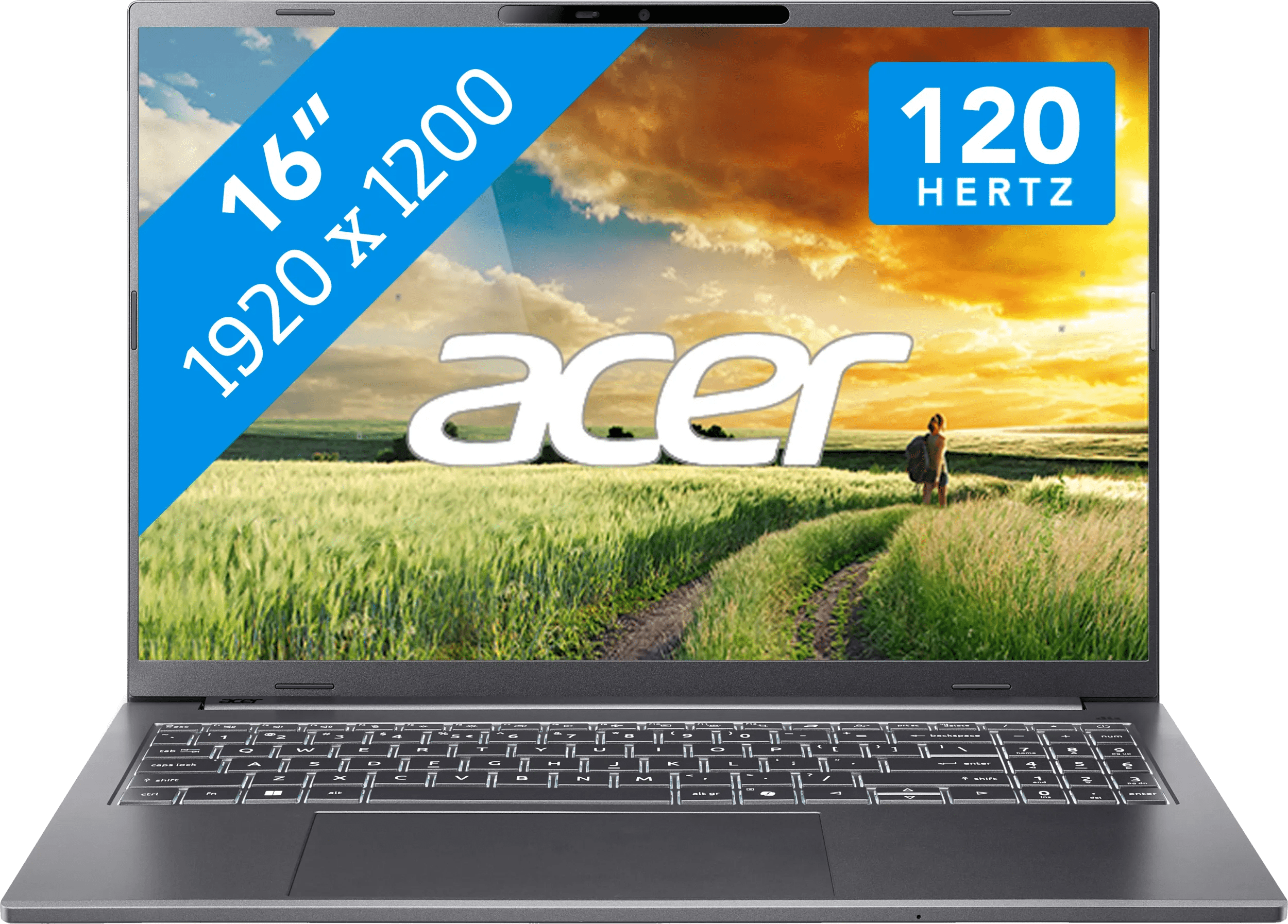 Je werkt onderweg soepel in zware programma's en ziet snel bewegende beelden vloeiend met de 16 inch Acer Aspire 16 AI A16-52M-729K. Door de 120 hertz verversingssnelheid en de WQXGA resolutie zie je alle details van je video's scherp op het scherm. Ook houd je door de ruimere 16:10 beeldverhouding goed overzicht van je video's, omdat je meer schermruimte hebt. Je werkt soepel in zware programma's als Adobe Premiere Pro. Daar zijn de Intel Core Ultra 7 Series 2 processor en het 16 gigabyte DDR5 werkgeheugen sterk genoeg voor. Door de NPU gebruik je gemakkelijk AI tijdens het bewerken. Ook gebruik je handige Copilot+ functies en apps, zoals Cocreator. De NPU zorgt ook voor een lange batterijduur. Bestanden bewaar je op de ruime 1 terabyte SSD. Je neemt deze Acer Aspire makkelijk mee door het lage gewicht van 1,49 kilogram. Ook is deze aluminium laptop goed beschermd tegen stoten en krassen. Tot slot zie je in het donker snel de juiste toetsen door het verlichte toetsenbord. Advies van onze laptop specialist Internetten, mailen & tekstverwerken: geschikt Films & series kijken: geschikt Foto's bewerken: geschikt Video's bewerken: geschikt Industrieel ontwerpen: ongeschikt, minimaal een RTX/RX/Quadro videokaart nodig Game design en 3D animatie: ongeschikt, minimaal een i9/Ryzen 9 processor en een RTX/RX/Quadro videokaart nodig Lokaal AI gebruiken: geschikt, maar sneller met een RTX videokaart Gamen: ongeschikt, minimaal RTX 4050 of RX 6500/5500 videokaart nodig Je krijgt binnen 24 uur na aankoop een e-mail met een persoonlijke vouchercode voor 1 jaar gratis Norton 360 Deluxe antivirus, t.w.v. &euro: 94,99.