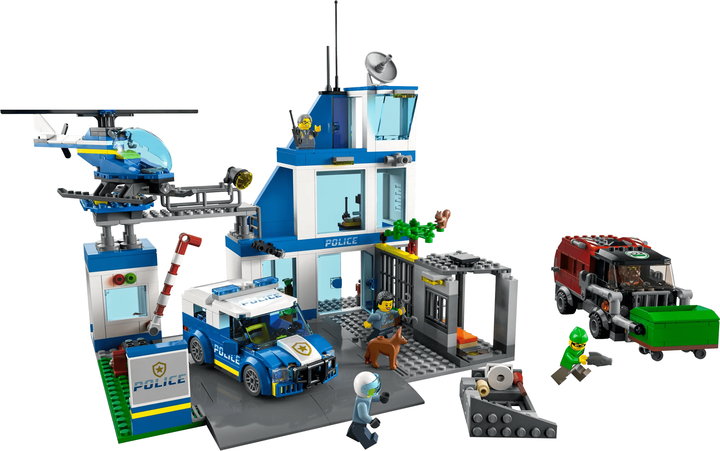 Bewaar de rust met LEGO City Politiebureau 60316. Deze set hoort bij LEGO City. Je bouwt het politiebureau met cellen, een kantoor en dak. Voeg hieraan voertuigen toe, zoals een politieauto en een kleine motor. Zo speel je arrestaties, ondervragingen en ontsnappingspogingen. Zet de voertuigen in de garage en bescherm de stad. Met 668 stukjes werk je na een middellange bouwsessie aan je verhalen. De set is geschikt voor bouwers vanaf 6 jaar die houden van politiethema’s.