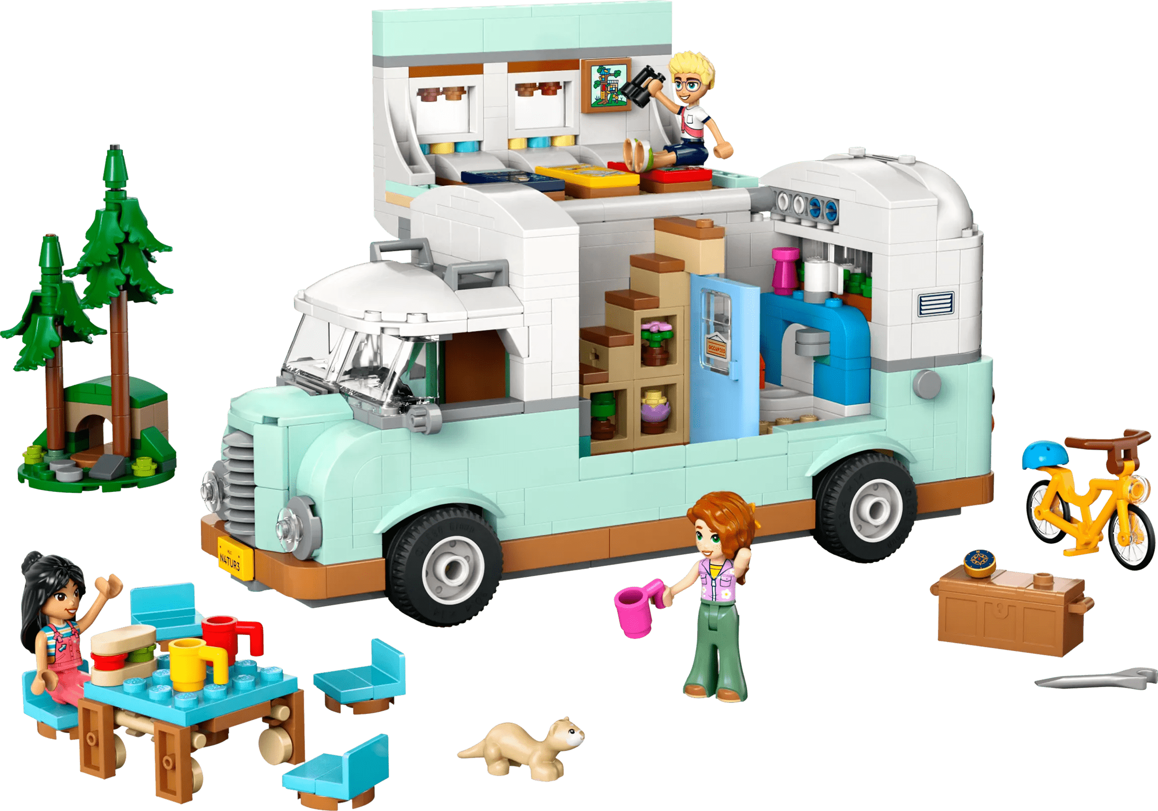 Trek de natuur in met LEGO Friends Camperavontuur met Vrienden 42663. Deze set hoort bij LEGO Friends. Je bouwt de camper met een slaapgedeelte, kitchenette en dakklemmen. Parkeer bij het meer, klap het luifelgedeelte uit en maak een kampvuurplek. Of laad fietsen af en verken de omgeving. Met 778 stukjes werk je in een middellange sessie aan een stevig voertuig. Deze set past bij bouwers vanaf 7 jaar die buitenleven en voertuigen leuk vinden. Koppel de camper aan je stad of natuurgebied en maak een weekendroute door Heartlake City. Zo voelt elke dag als vakantie met een gezellig basiskamp en veel speelmomenten.