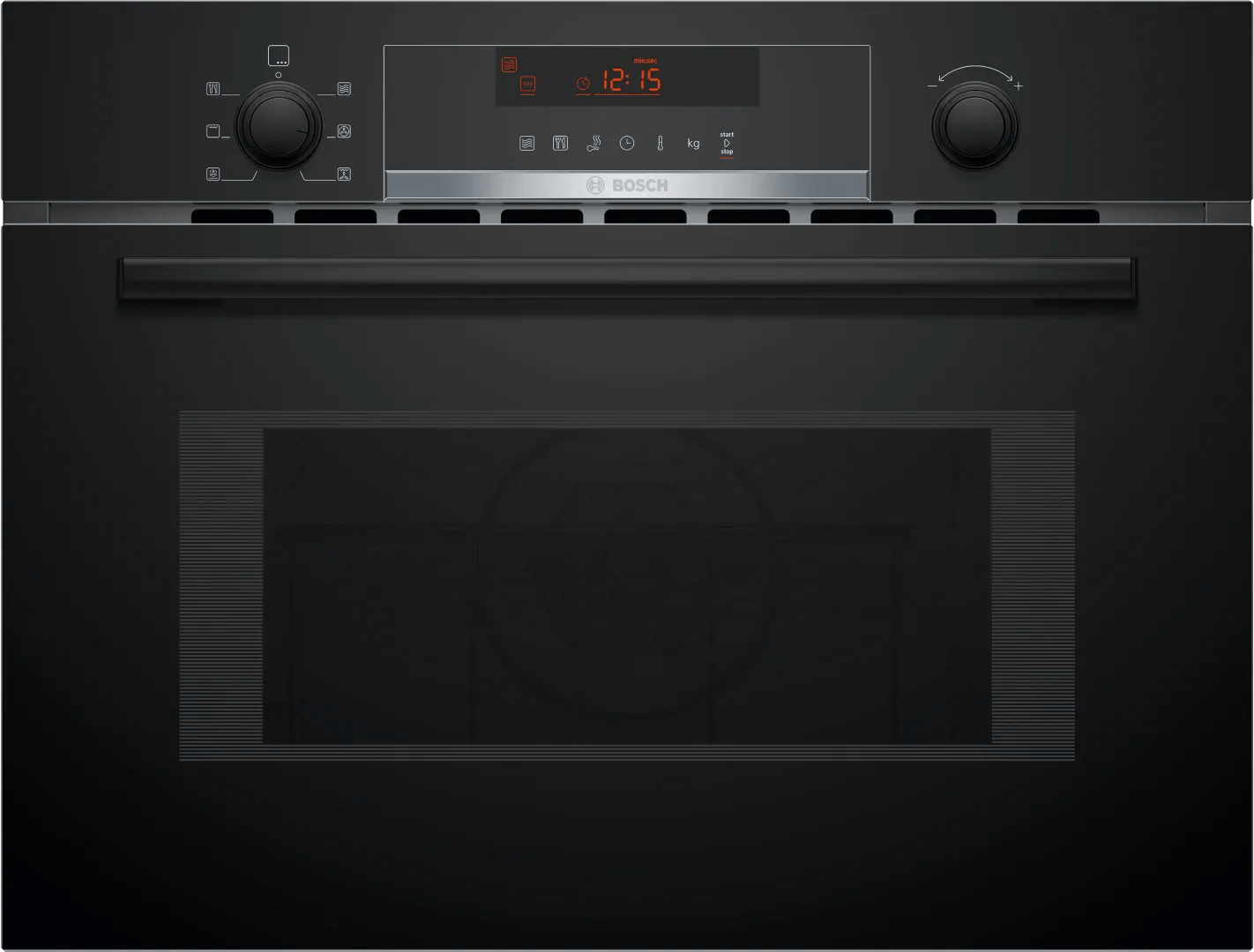 Je gerecht komt altijd uit de Bosch CMA583MB0 combi magnetron zoals jij dat wil. Met Auto Pilot15 heb je namelijk 15 automatische programmas die jou een handje helpen. Kies het programma dat bij jouw gerecht past en de oven stelt zelf de juiste tijd, temperatuur en ovenfunctie in. Heb je zin in een pizza-avond? Op de pizzastand maak je de lekkerste zelfgemaakte pizza’s met een knapperige bodem. Restjes warm je gemakkelijk op met de magnetronfunctie. Dankzij het vermogen van 900 watt is jouw soep snel warm. Met de heteluchtfunctie gaart jouw gerecht gelijkmatig. Zo heb je geen koude stukken in jouw ovenschotels.