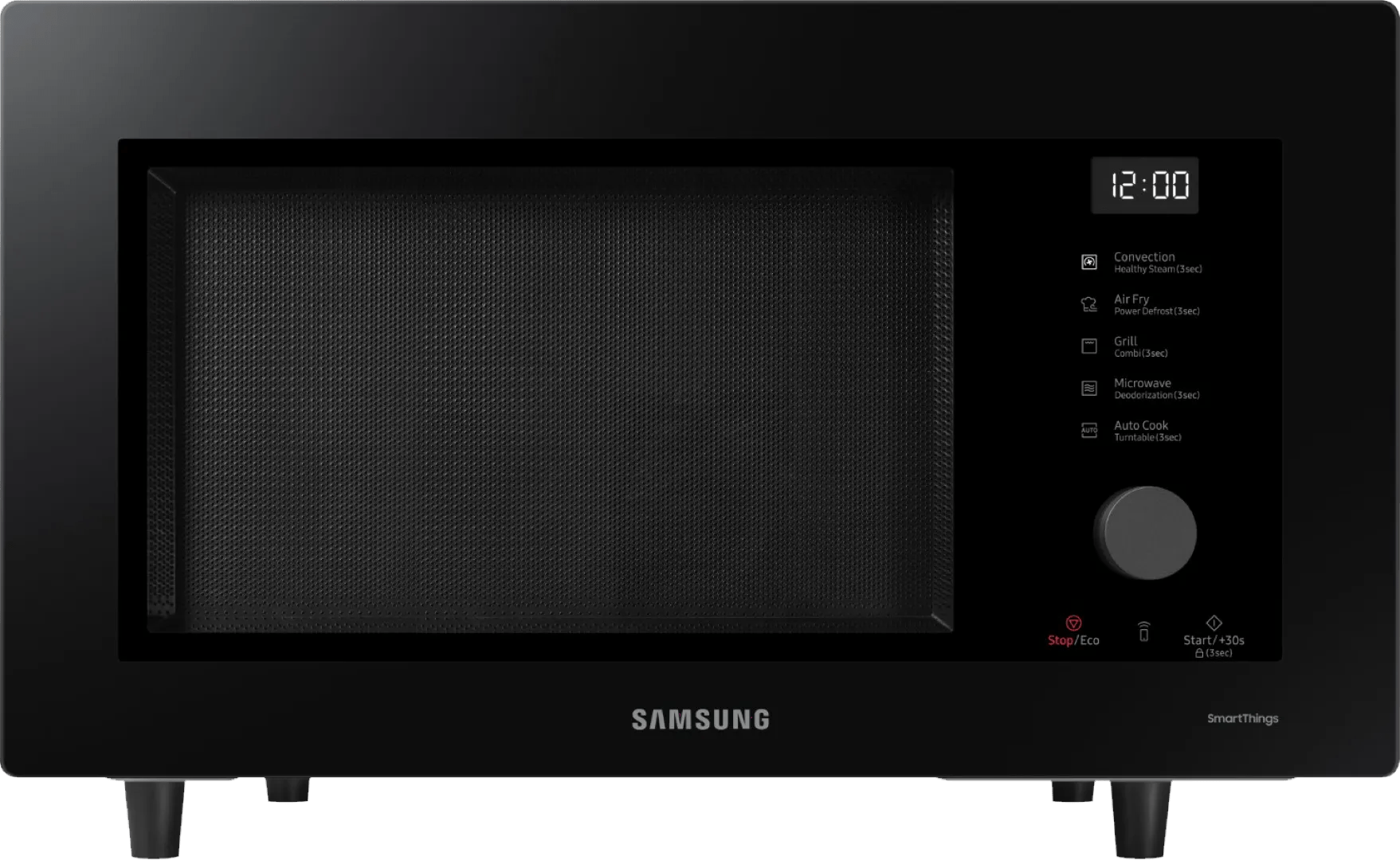 Verwarm ook grotere gerechten in de Samsung MC32DG7646KKE1 vrijstaande magnetron. Het draaiplateau is uitschakelbaar, dus je zet ook gerust een grote rechthoekige ovenschaal in de combimagnetron. Door de verschillende functies maak je elk gerecht snel klaar. Met de stoomfunctie bereid je op een gezonde manier je vis en groente. De crispfunctie zorgt ervoor dat je pizzabodem of ovenfriet lekker krokant is en met de grillfunctie bereid je gegrilde groenten. Je koppelt de magnetron gemakkelijk aan je smartphone met SmartThings. Zo zie je vanaf de bank hoelang je gerecht nog in de combi magnetron staat. Dankzij de keramische binnenwanden ben je minder tijd kwijt aan schoonmaken. Vet en vuil blijft hier namelijk minder aan plakken.
