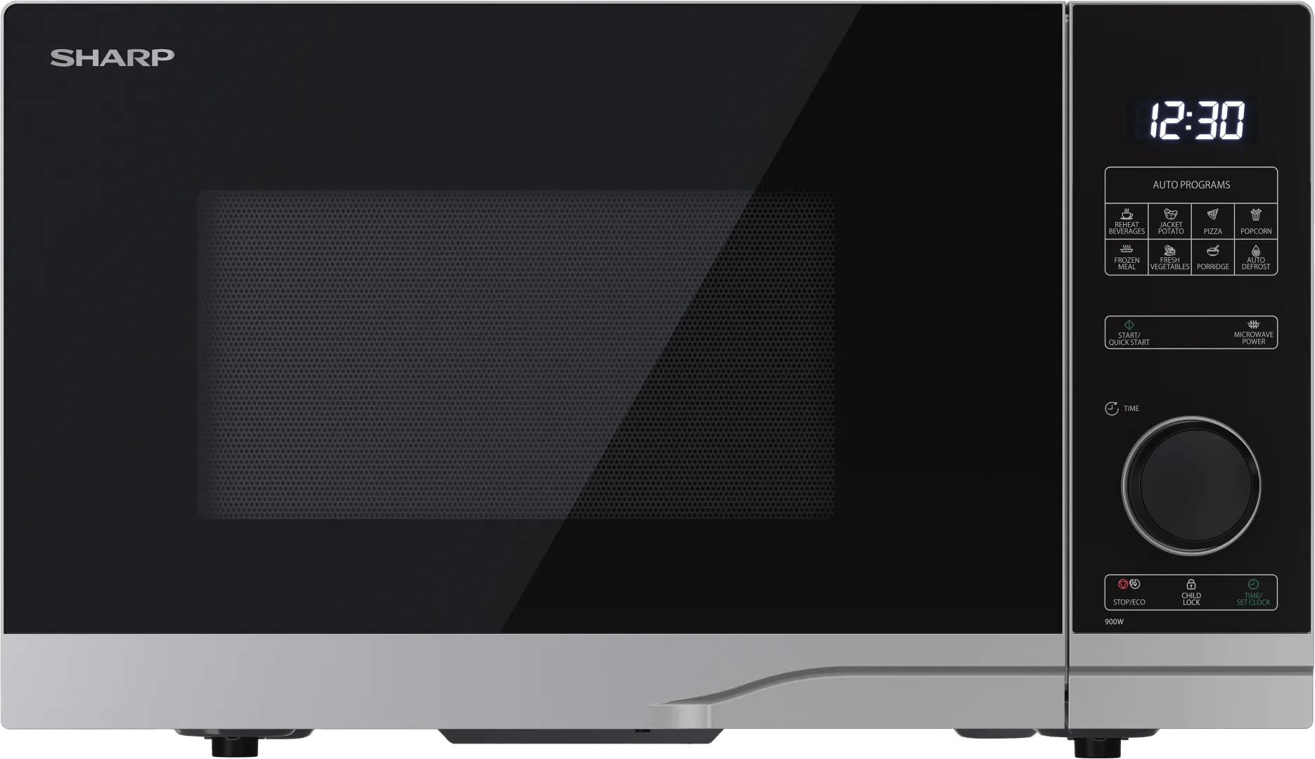 Met de SharpYCPS234AES solo magnetron haal je een handige keukenhulp in huis. Je warmt hiermee gemakkelijk de restjes van gisteren op, bereidt een kant-en-klaarmaaltijd of ontdooit gehakt uit de vriezer. Zo begin je snel met koken. Kies voor het beste resultaat uit 1 van de 8 automatische programma's. Zo warm je jouw nasi of popcorn op met de meest geschikte instellingen. Je bedient de magnetron gemakkelijk via de draaiknop en tiptoetsen. Zo stel je hem snel in als je thuiskomt na een lange dag. Met een inhoud van 23 liter is de magnetron redelijk klein, waardoor hij niet veel ruimte inneemt op een klein aanrecht.