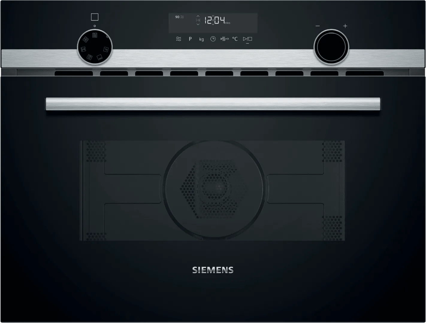 Met de Siemens CM585AGS1 bak je ovenschotels, gril je groente en warm je restjes op. De combi magnetron heeft hetelucht, waardoor jouw ovenschotel gelijkmatig gaart. Met cookControl15 heb je de keuze uit 15 verschillende automatische programma’s. Handig, als je niet precies weet wat de juiste instellingen zijn. Gebruik de grillfunctie voor een krokant korstje op je lasagne. Heb je haast en wil je snel eten? Dankzij snel voorverwarmen schuif je jouw maaltijd binnen een paar minuten de oven in. Je stelt de magnetron gemakkelijk in via de lightControl draaiknoppen en tiptoetsen. Deze draaiknoppen verlichten alle geselecteerde symbolen met een blauw licht, zodat jij duidelijk ziet welke optie je kiest.