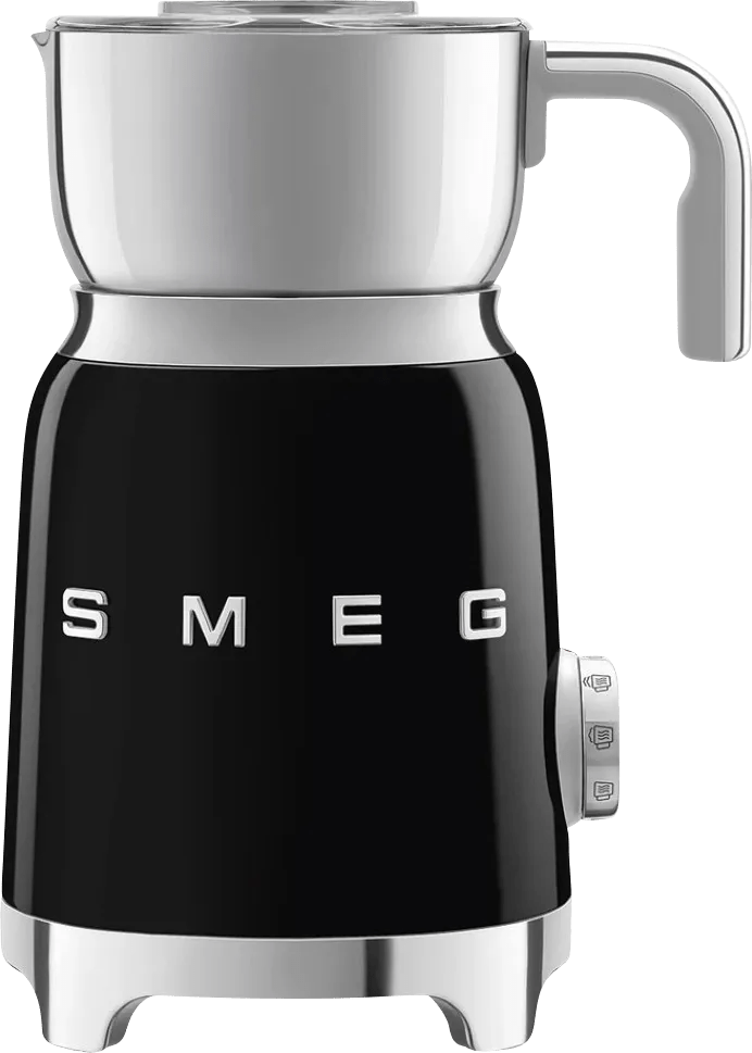 Met de Smeg MFF11BLEU Zwart melkopschuimer verwarm en schuim je melk op via 6 standen. Zo krijg je licht tot dik melkschuim. Naast het verwarmen, maakt de melkopschuimer ook koud schuim voor een ijskoffie of voor milkshakes. Je vindt 2 verschillende gardes in de doos. De getande klopper gebruik je voor het opschuimen en de gladde klopper gebruik je voor het verwarmen van melk of zelfs chocolademelk. Je verwarmt 500 milliliter melk óf schuimt 250 milliliter melk op. Dat is schuim voor 2 grote of 3 kleine cappuccino's in één keer. De ergonomische handgreep maakt inschenken zo gemakkelijk mogelijk. Zo waag je zelf een poging in latte art. De melkopschuimer bestaat voor de helft uit gerecycled materiaal.