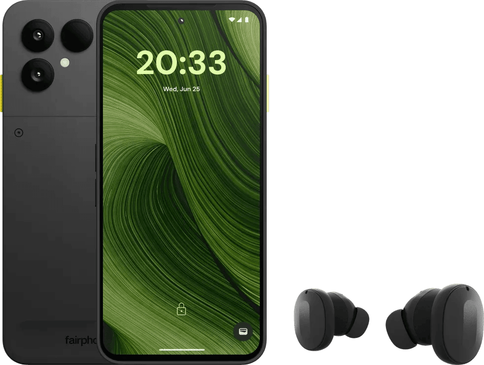 Fairphone 6 256GB Zwart 5G + Fairphone Fairbuds True Wireless Earbuds Zwart
