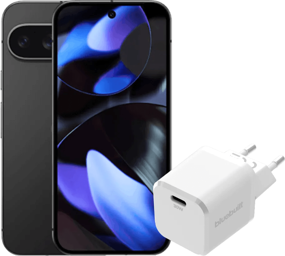 Google Pixel 9 128GB Zwart 5G + BlueBuilt Oplader 30W Wit