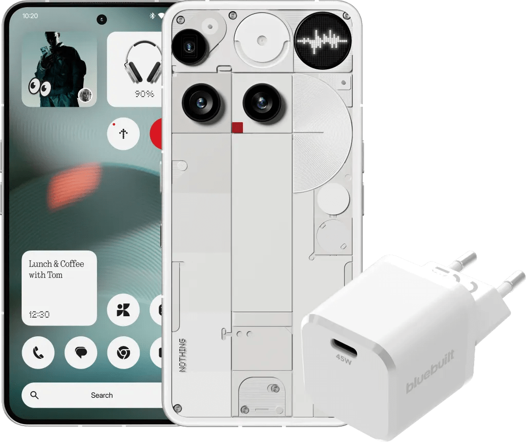 Nothing Phone (3) 512GB Wit 5G + BlueBuilt Oplader met Usb C Poort 45W Wit