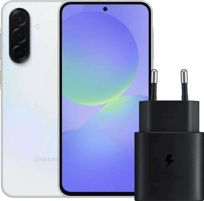 Samsung Galaxy A36 256GB Wit 5G + Samsung Oplader 25 Watt Zwart