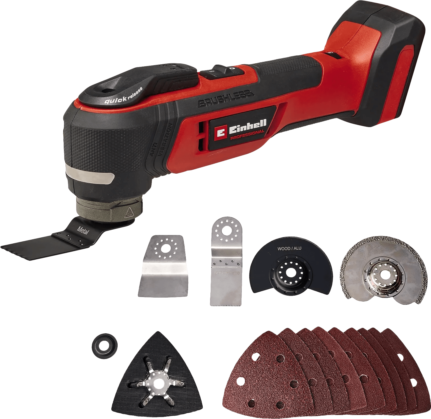 Met de Einhell TP-MG 18 Li BL Solo (zonder accu) pak je verschillende klussen aan door de oscillerende beweging. Zo schuur, zaag, slijp en schraap je bijvoorbeeld met de meegeleverde accessoires. Je voert deze klussen draadloos uit, omdat de multitool op een accu werkt (niet meegeleverd). De machine komt langzaam op gang door de softstart, waardoor je goed controle houdt. Ook pas je de snelheid van de multitool gemakkelijk aan op het materiaal dat je bewerkt. Zo wordt metaal niet te heet en voorkom je brandplekken in hout. De multitool hoort bij het Einhell Power-X-Change 18V accu platform. Heb je al een accu van dit platform in huis? Dan gebruik je die ook op dit apparaat.