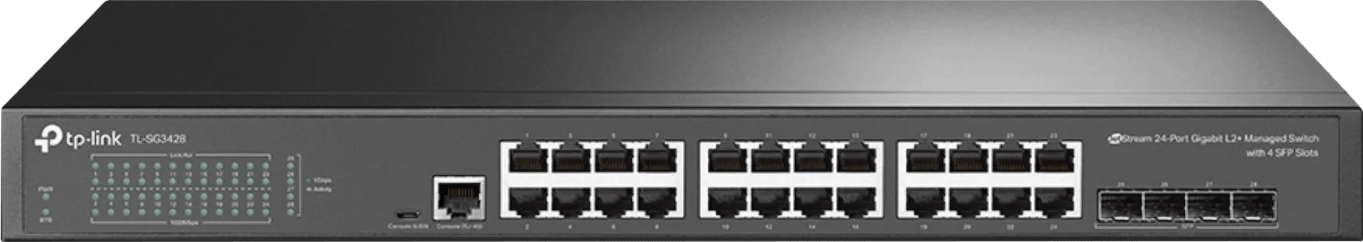 De TP-Link Omada TL-SG3428 is een cloud managed netwerkswitch met 24 ethernetaansluitingen en 4 SFP-poorten. Je koppelt deze switch aan de Omada cloud, waardoor je deze gemakkelijk beheert. Je stelt deze switch in naar je eigen wensen. Zo beveilig je jouw bedrijfsnetwerk met een access control list of port isolation en geef je voorrang aan belangrijk netwerkverkeer. In de SFP-poorten steek je een extra netwerkaansluiting of glasvezelmodule om meerdere switches met elkaar te verbinden.