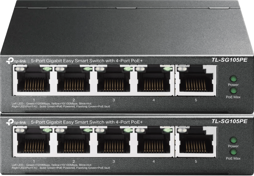 Met de TP-Link TL-SG105PE Duo Pack verbind je 8 apparaten op meerdere verdiepingen bedraad met internet. De poorten van deze switches hebben Power over Ethernet (PoE), waardoor elk apparaat stroom en internet krijgt via dezelfde kabel. Zo sluit je per apparaat maar één kabel aan. Omdat deze switches managed switches zijn, geef je apparaten voorrang op het netwerk. Op die manier hebben je belangrijkste apparaten altijd de sterkste internetverbinding. Stel bijvoorbeeld in dat je werklaptop voorrang krijgt, zodat je altijd soepel videobelt zonder haperingen. Dit stel je in via je computer of laptop met een bekabelde verbinding via de ethernetpoort.