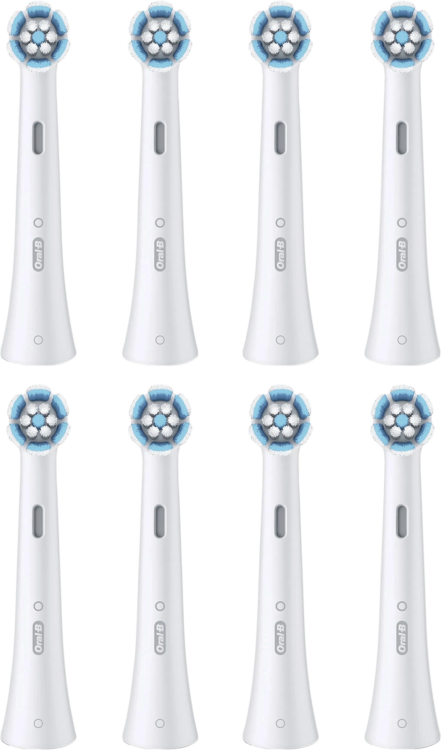 Met de Oral-B iO Gentle Care Wit (8 stuks) haal je voor 2 jaar opzetborstels in huis waarmee je zacht poetst. De zachte en dunne borstelharen beschermen je tanden en tandvlees. Je reinigt zo comfortabel gevoelige tanden en tandvlees. De borstel past zich aan aan de vorm van je tanden en tandvleesrand. Hierdoor mis je geen plekje tijdens het poetsen. De 4.000 borstelharen op de ronde borstelkop staan dicht op elkaar. Zo poets je elke tand heel precies. Na 3 maanden is de opzetborstel aan vervanging toe. Geschikt voor: Alle Oral-B iO modellen