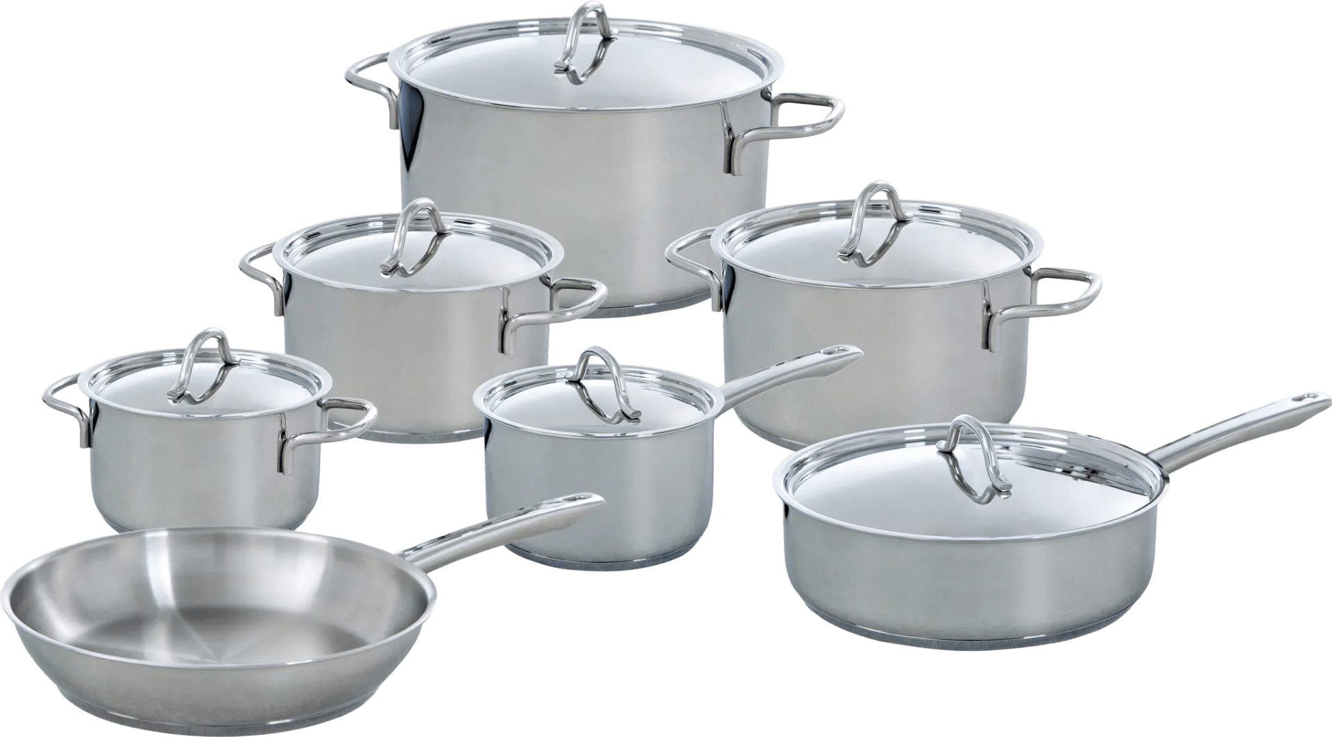 Met de BK Profiline Pannenset 7-delig haal je een complete pannenset in huis. De set bestaat namelijk uit 3 kookpannen, 1 soeppan, 1 steelpan, 1 hapjespan en 1 koekenpan. De pannen hebben een sterke bodem met meerdere lagen, waardoor de warmte snel en gelijkmatig verspreidt. Dankzij het roestvrij staal zijn de pannen duurzaam en zijn ze bestand tegen een stootje. Je verplaatst de pannen veilig naar de eettafel door de stevige gelaste handgrepen. Verder zijn ze geschikt voor alle warmtebronnen en zet je ze ook in de oven tot 230 graden Celsius. Ben je uitgegeten? Dan reinig je de pannen voor een langere levensduur met de hand.