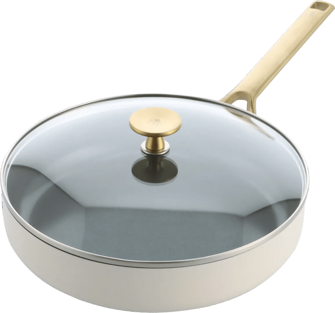 behouden. Je gerechten garen langzaam zonder dat je de pan open maakt. Zo bereid je bijvoorbeeld een smakelijke stoofpot zonder warmteverlies. De pan is gemaakt van 100% gerecycled aluminium en heeft een PFAS-vrije keramische antiaanbaklaag. Dankzij de keramische antiaanbaklaag met Scratch Guard slijt je pan minder snel. De pan is geschikt voor alle warmtebronnen, inclusief inductie. Je maakt gerechten in de oven tot 220 graden Celsius. Maak bijvoorbeeld een ovenschotel of bak een stukje vis in de oven zonder dat je een aparte bakplaat gebruikt. Dat scheelt weer afwas.
