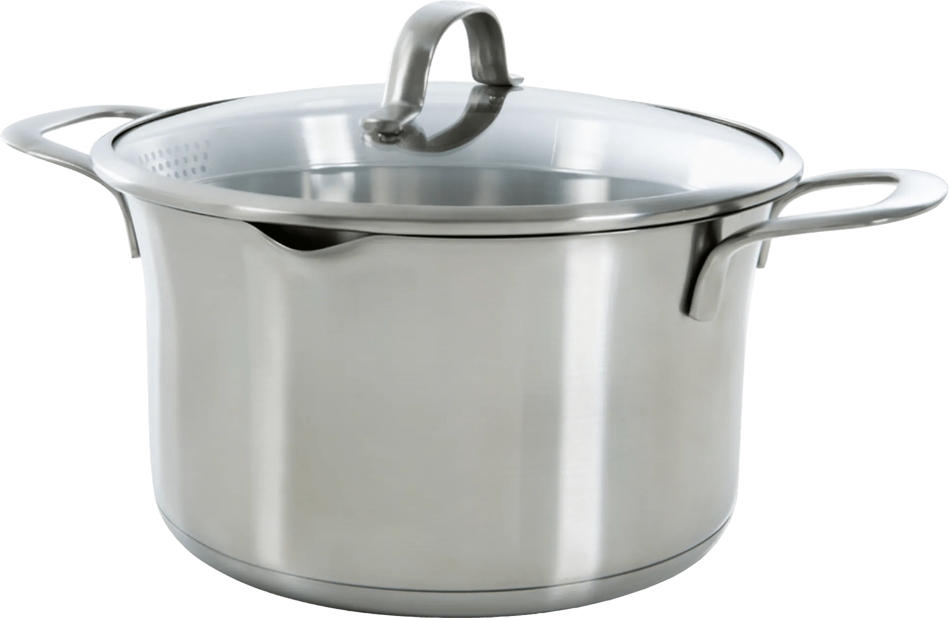 Met de BK Wave Soeppan 24 cm 4 liter giet je vloeistof makkelijk af via de gaatjes in de zijkant van het deksel. Houd het deksel op de pan, kantel een beetje en laat het kookwater weglopen. Zo blijven pasta en groente netjes in de pan. Tussen de gelaste handgrepen blijft geen vuil zitten. Je maakt ze snel schoon en ze blijven stevig vastzitten. Hierdoor verplaats je de pan gemakkelijk en veilig. Met het glazen deksel houd je je gerecht in de gaten zonder dat je het deksel optilt. Zo blijft de warmte in de pan en kook je gelijkmatig door.