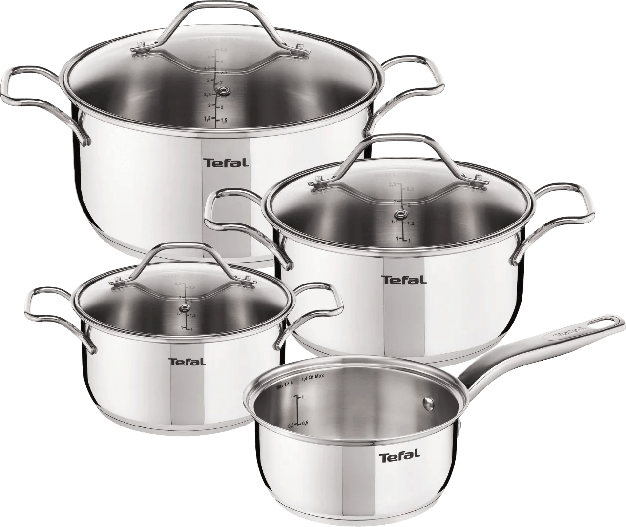 Met de Tefal Intuition Pannenset 4-delig beschik jij over een complete basisset aan kookpannen. Zo kook je verschillende ingrediënten in de kookpannen van 1,3, 2,9 en 4,9 liter en in de steelpan van 1,3 liter. Om je het koken net iets gemakkelijker te maken, vind je een maatverdeling aan de binnenkant van de pannen. Je gebruikt de pannen op alle warmtebronnen, dus ook in de oven. De 3 glazen deksels komen van pas wanneer je het kookproces wilt volgen. Door de speciale afgietrand giet je alles gemakkelijk af. Na gebruik mogen de pannen in de vaatwasmachine.