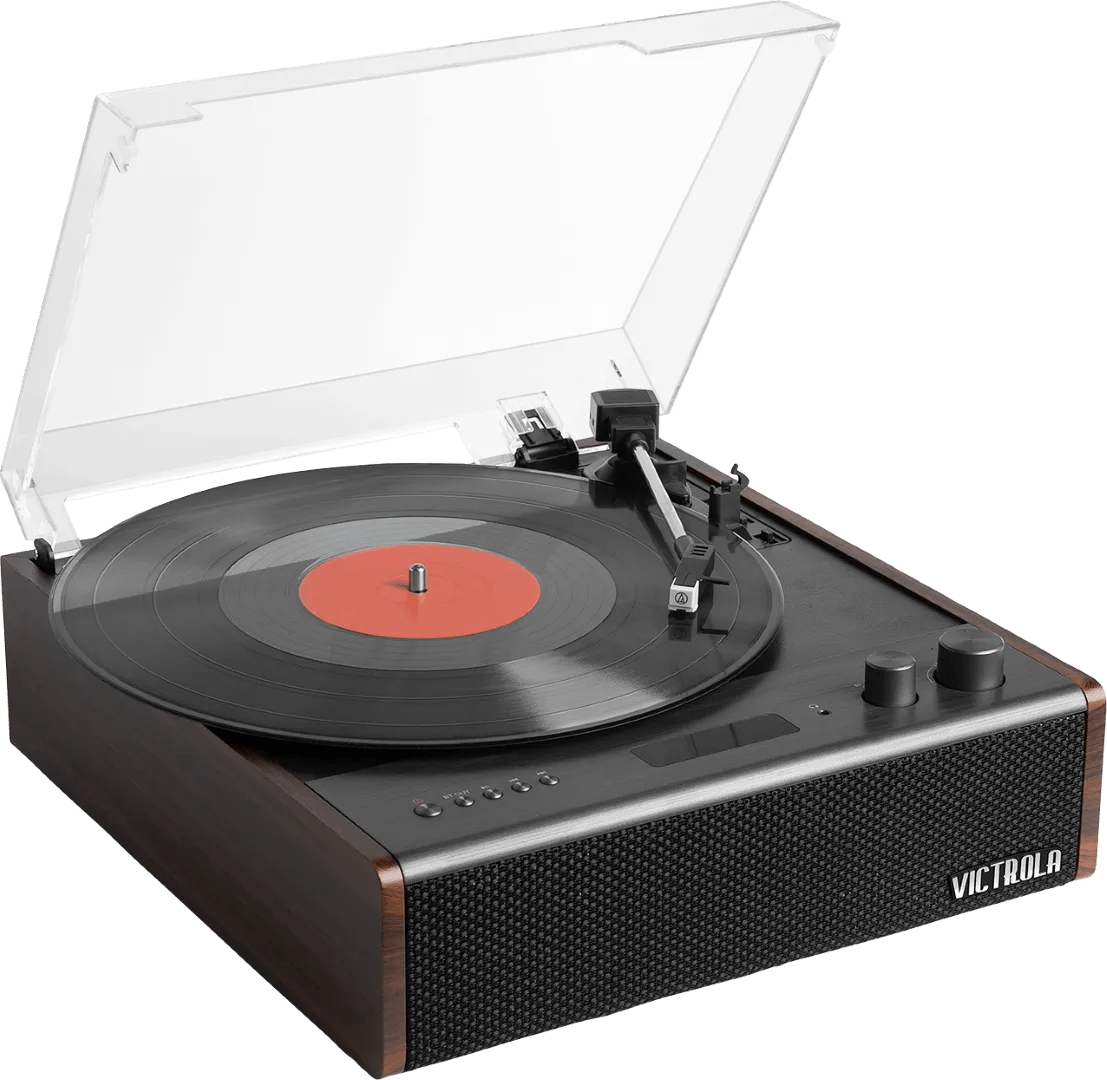 Speel direct je platen af met de Victrola Eastwood Signature. De platenspeler heeft een ingebouwde stereo speaker. Je geniet daardoor direct van ruimtelijk geluid. Via bluetooth verbind je je smartphone, zodat je ook je online afspeellijsten luistert met de platenspeler. Door de Vinyl Stream technologie verbind je een bluetooth speaker of koptelefoon met de platenspeler. Zo luister je bijvoorbeeld met een bluetooth speaker naar je platen. Dit is handig wanneer je harder geluid wil. De platenspeler is halfautomatisch, waardoor hij stopt na het laatste nummer van de plaat. Zo gaat je naald langer mee. Dankzij de hoofdtelefoonaansluiting luister je ook met een bedrade koptelefoon in alle rust naar je platencollectie.