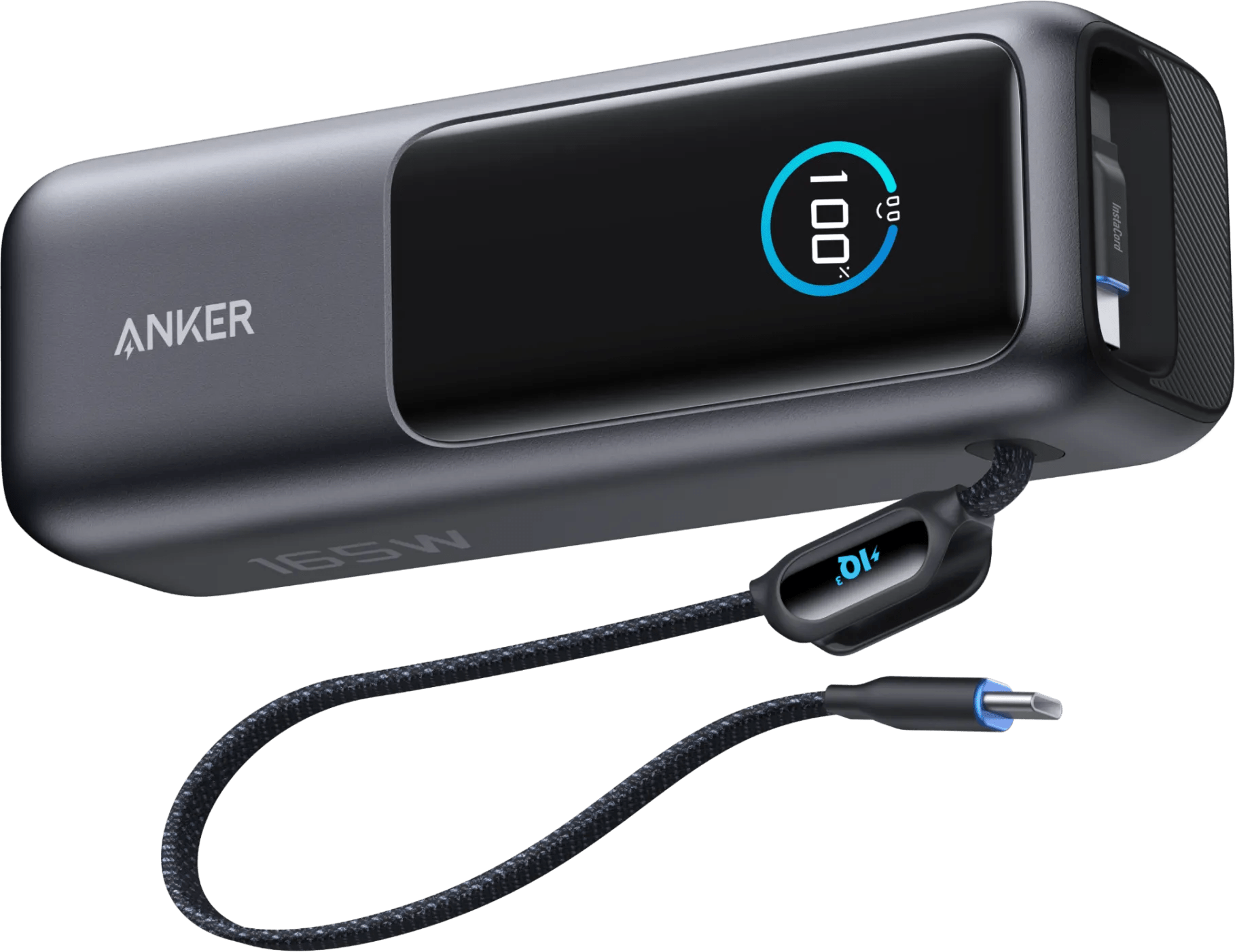 Je laadt je laptop, smartphone of tablet onderweg extra snel op met de Anker Powerbank 25.000 mAh met Snelladen Zwart. Deze powerbank laadt zelfs grote laptops zoals de MacBook Pro 16 inch snel en volledig op. Dankzij het hoge vermogen laad je je apparaten met deze powerbank ook snel op. Je smartphone zit bijvoorbeeld binnen een half uur voor 50 procent vol. Met de ingebouwde kabels laad je twee apparaten tegelijk op. Een van deze kabels gebruik je onderweg ook als draagkoord. Gebruik deze powerbank om 4 apparaten op te laden op een plek waar je geen stopcontacten hebt. Voor je iPhone 14 of ouder heb je een extra usb C naar Lightning kabel nodig. Op het digitale display lees je gemakkelijk af hoe lang je nog moet opladen en wat het batterijpercentage van de powerbank is.