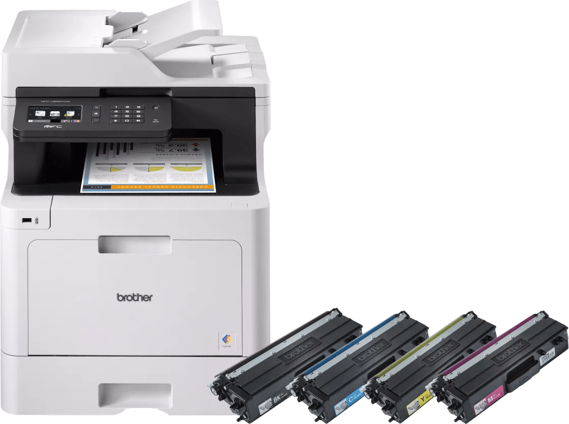 Met de Brother MFC-L8690CDW + 1 extra set toners bundel heb je voorlopig genoeg inkt voor je printopdrachten. Print, scan en kopieer tekstdocumenten op je thuiskantoor of kantoor met de Brother MFC-L8690CDW all-in-one kleurenlaserprinter. Beveilig je printopdrachten met een pincode, zodat hij pas begint met printen als je deze op de printer zelf invoert. Handig als je bijvoorbeeld niet wilt dat iemand je afdrukken leest voordat je bij de printer bent. Is een faxfunctie nog waardevol voor jouw bedrijf? Ontvang dan al je faxen direct digitaal via e-mail. Hierdoor bespaar je achteraf tijd, omdat je de documenten niet hoeft te scannen. Ook op papier bespaar je kosten. Dankzij de tekstherkenningsfunctie archiveert je in hoog tempo contracten en zet je deze om in doorzoekbare pdf's. Op zoek naar een specifiek document? Voer een zoekopdracht in en vind in een mum van tijd de juiste papieren. Geschikt voor Brother MPS Essential Deze printer is geschikt voor Brother MPS Essential, de printservice van Brother voor zakelijk printen. Bespaar op je printkosten en betaal alleen voor de pagina's die je print. Je ontvangt automatisch inkt op toner. Daarnaast biedt Brother een reparatie service op locatie als er problemen zijn met je printer. Zo ga je snel weer verder met printen Meer informatie over MPS Essential? href="/advies/wat-is-brother-mps-essential.html" title="Wat is Brother MPS Essential?">Bekijk ons adviesartikel.