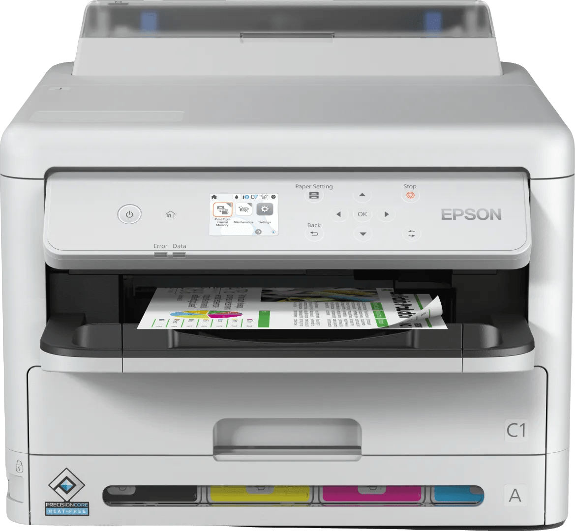 Met de Epson WorkForce Pro WF-C5890DWF heb je een voordelige printoplossing voor een klein of middelgroot kantoor. Je print, scant, kopieert en faxt met deze 4-in-1 printer. Printen doe je met een snelheid van 25 pagina's per minuut, kopiëren doe je met 22 pagina's per minuut. Zo staat er nooit een rij voor de printer. Wil je in één keer een grote stapel papier kopiëren? Dan leg je tot 50 pagina's in de automatische documentinvoer. Je doet dit ook nog eens automatisch dubbelzijdig, waardoor je papier bespaart. Verstuur je printopdrachten bedraad of draadloos via Apple AirPrint of wifi direct. Met wifi direct verbind je jouw printer direct met je laptop of telefoon, zonder tussenkomst van een modem.
