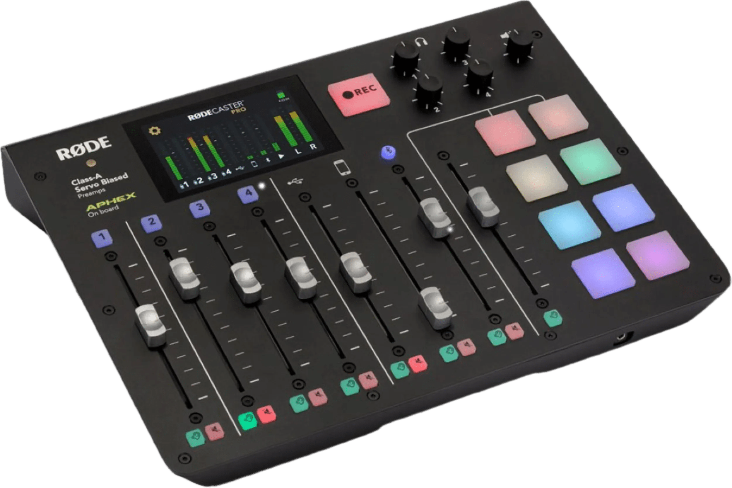 De Rode Rodecaster Pro is een complete podcastproductiestudio die over 4 microfooningangen beschikt. Door de 48V fantoomvoeding gebruik je naast dynamische microfoons ook condensatormicrofoons. Het mengpaneel is voorzien van een audio interface. Dit betekent dat je het geluid op de computer registreert en bewerkt. Ook registreer je de opnames op een microSD kaart, waardoor je tijdens het opnemen geen computer nodig hebt. Je voegt met 1 druk op de knop een geluidseffect of jingle toe met de 8 drumpads. Zo personaliseer je eenvoudig je podcast met een intro. Via Bluetooth stream je telefoongesprekken. Hierdoor spreek je ook met gasten die niet in de gelegenheid zijn om naar je toe te komen.