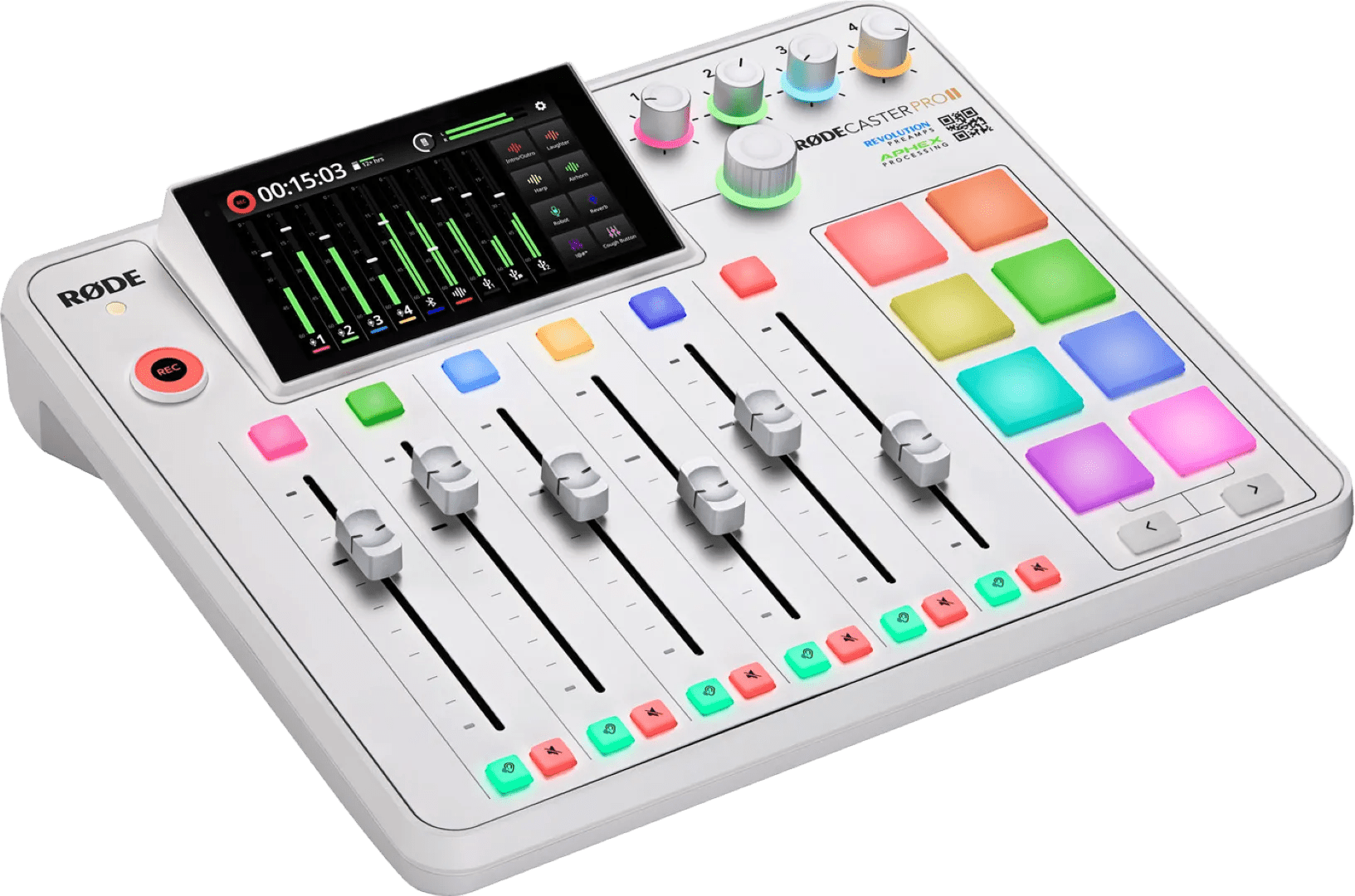 Maak eenvoudig een professionele podcast met de Rode Rodecaster Pro II. Op dit mengpaneel sluit je 4 microfoons aan, waardoor je meerdere gasten tegelijk ontvangt. Dankzij de Revolution voorversterkers zijn je opnames vrij van ruis en van hoge kwaliteit. Zo til je de kwaliteit van jouw podcast of stream naar het volgende niveau. Wil je tijdens een opname iemand bellen? Verbind je telefoon via bluetooth draadloos met de mixer en neem telefoongesprekken op.