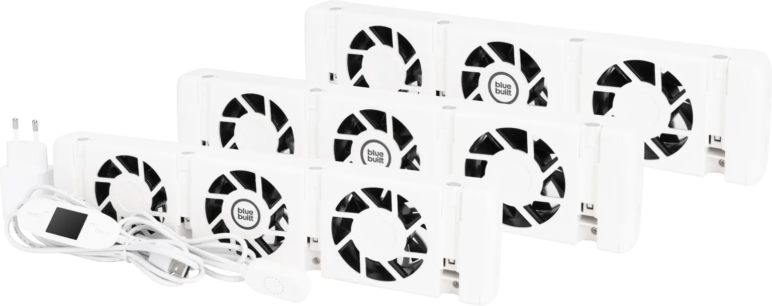 Haal het meeste uit je verwarming met de BlueBuilt Radiatorventilator Triple Pack. Deze set is geschikt voor radiatoren van minimaal 120 centimeter lang. Bevestig de ventilatoren gemakkelijk met de magneten onder de radiator. Doorj de meegeleverde temperatuurgevoelige schakelaar schakelen ze automatisch in of uit, afhankelijk van de temperatuur. Dit helpt je om energie te besparen. Met een geluidsniveau van slechts 28 decibel maakt de radiatorventilator weinig geluid, waardoor je hem gerust in de slaapkamer kunt gebruiken. Let op: bij de BlueBuilt Radiatorventilator Triple Pack ontvang je één adapter. Gebruik de Trio Set op één radiator van minimaal 120 centimeter.