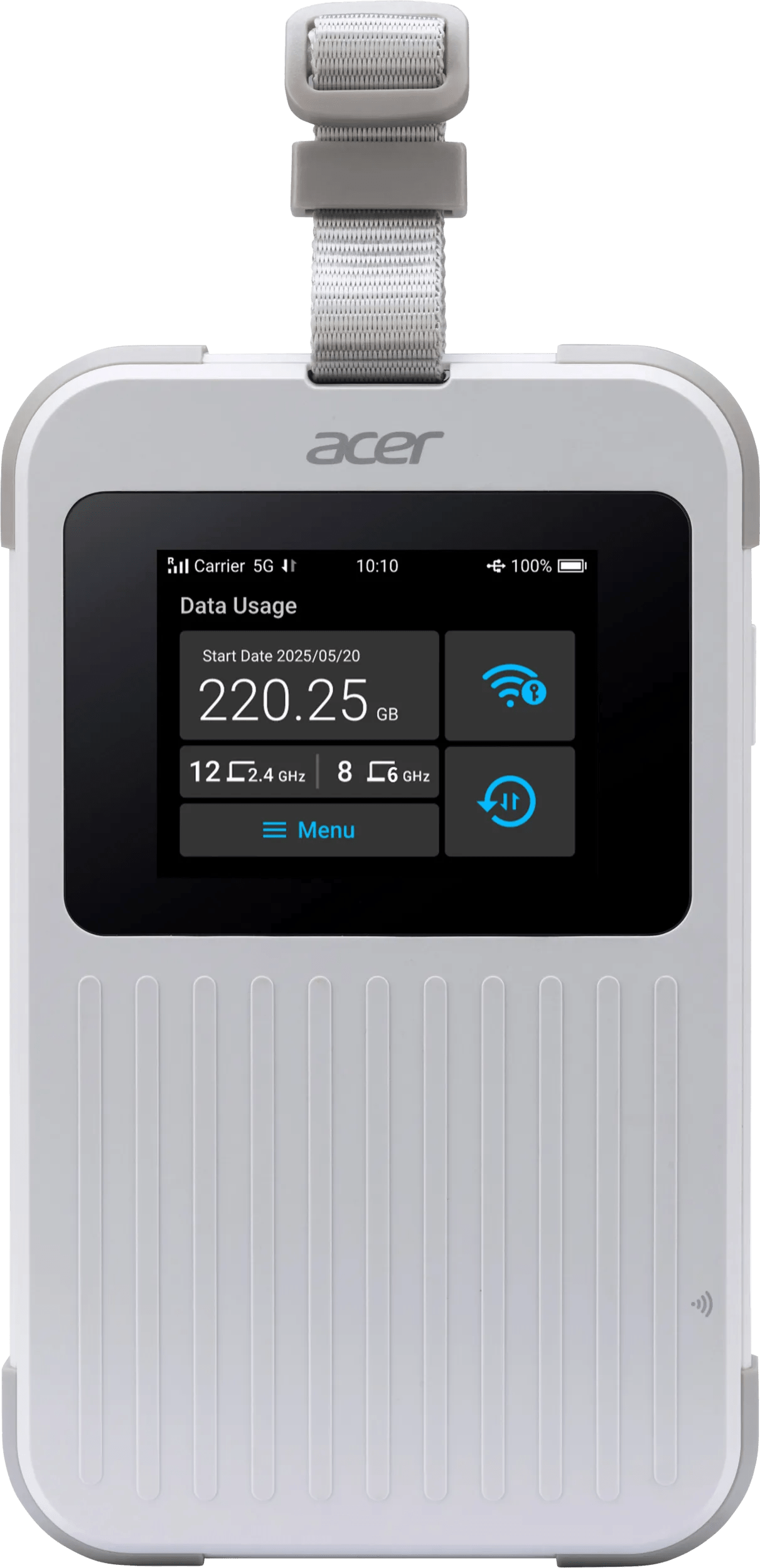 Met de Acer Connect M6E 20GB mifi router blijf je overal verbonden. Je deelt je 5G verbinding met meerdere apparaten via wifi 6E. Dankzij de 20GB interne opslag bewaar je eenvoudig bestanden lokaal. De batterij gaat tot 28 uur mee, zodat je de hele dag online blijft zonder op te laden. Je gebruikt een fysieke simkaart, eSIM of vSIM voor netwerktoegang in meer dan 135 landen. De router is robuust en waterbestendig, waardoor hij geschikt is voor gebruik onderweg. Met de Acer Connect M6E heb je altijd en overal een betrouwbare internetverbinding.