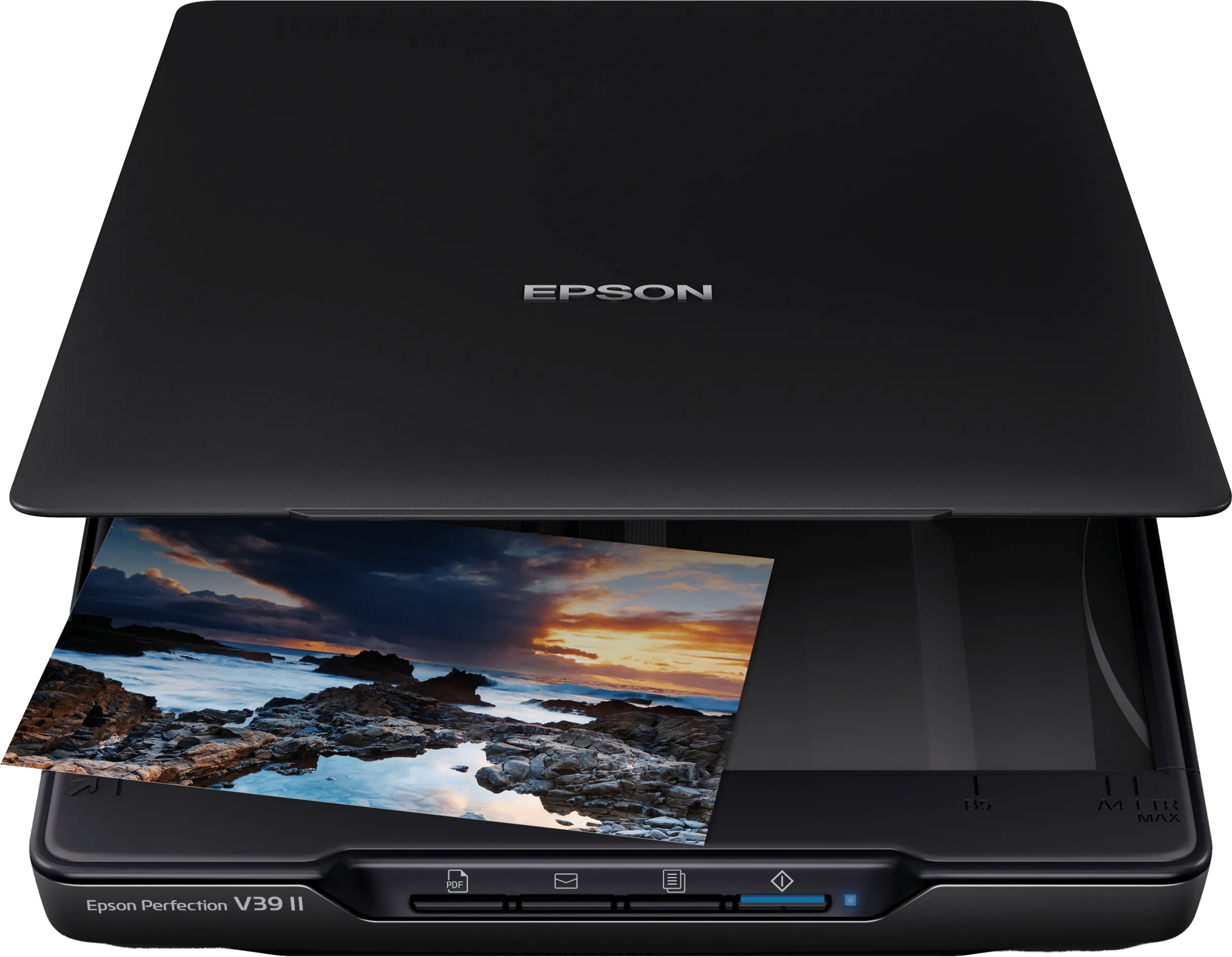 Scan oude foto's en bonnetjes in met de Epson Perfection V39 II flatbedscanner. Sluit de scanner met een micro usb aan op je pc. De usb kabel werkt als voedingskabel, waardoor je geen wirwar aan kabels op je bureau hebt. Bespaar ruimte op je bureau door de scanner rechtop in de standaardfunctie weg te zetten. Veelvoorkomende scantaken voer je eenvoudig uit via de 4 sneltoetsen. Scan, kopieer en deel je foto's als doorzoekbare pdf's. De deksel van de scanner is los te halen, zodat je zonder problemen een pagina van een dik boek inscant.