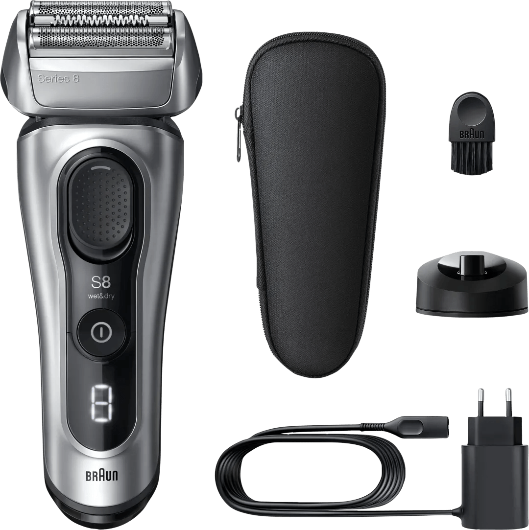 Met de Braun Series 8 8617S Zilver scheer je heel gemakkelijk en precies je baard. De scheerkop is namelijk 40 graden flexibel en heeft 4 krachtige mesjes. Doordat de kop flexibel is, volgt hij goed de vormen van je gezicht. Het scheerapparaat meet de dichtheid van je baard en past hier automatisch het vermogen op aan. Zo scheer je altijd met het juiste vermogen. Met de uitschuifbare precisietrimmer scheer je lange haren af en creëer je strakke lijnen. Je scheert ook de douche, want hij is helemaal waterdicht. Op een volle accu gaat hij 60 minuten mee. Na gebruik zet je hem op het oplaadstandaard. Hierdoor is hij altijd klaar voor gebruik.
