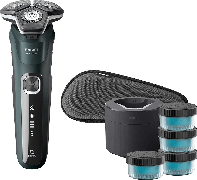 Bij de Philips Shaver Series 5000 S5884/69 krijg je 4 cartridges met reinigingsvloeistof voor het reinigingsstation. Hiermee heb je genoeg vloeistof voor een jaar. Met het reinigingsstation maak je het scheerapparaat grondig schoon. Zo voorkom je acne en huidirritatie. Het scheerapparaat meet tijdens het scheren de dichtheid van je baard. Hij past hier automatisch de scheerkracht op aan. Je hebt altijd een glad scheerresultaat. De flexibele scheerkop volgt namelijk de vormen van je gezicht. Heb je last van een gevoelige huid? Dan scheer je met scheerschuim of onder de douche. Je werkt ook je snor of bakkebaarden bij met de uitklapbare precisietrimmer. Je neemt het scheerapparaat veilig mee op reis in het reisetui.