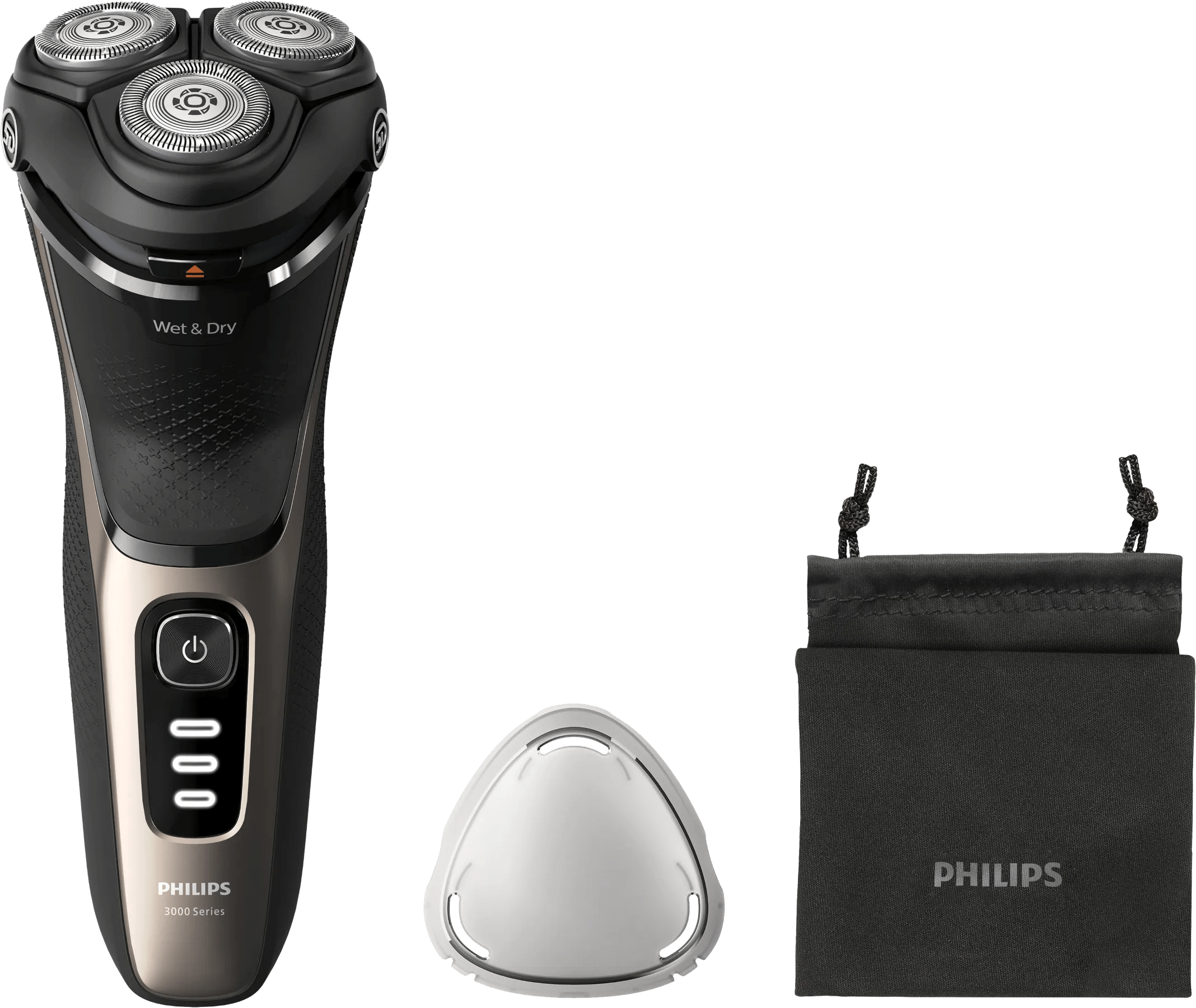 Met de Philips Shaver Series 3000 S3242/12 scheer je gemakkelijk je gezicht glad. De scheerkop is namelijk flexibel en beweegt in 5 richtingen. Zo volgt hij goed de vormen van je gezicht. De 27 zelfslijpende mesjes zorgen ook voor een glad scheerresultaat. Op een volle accu gebruik je dit scheerapparaat tot wel 60 minuten lang. Via de batterij indicator met 3 niveaus zie je precies hoe vol de batterij is. Hierdoor laad je hem op tijd op. Dankzij de snellaadfunctie heb je binnen 5 minuten genoeg batterij voor één scheerbeurt. Met de uitklapbare trimmer werk je bijvoorbeeld je bakkebaarden bij. Je gebruikt het apparaat ook onder de douche, want hij is waterdicht. Ga je op reis? Dan neem je hem mee in het reisetui.