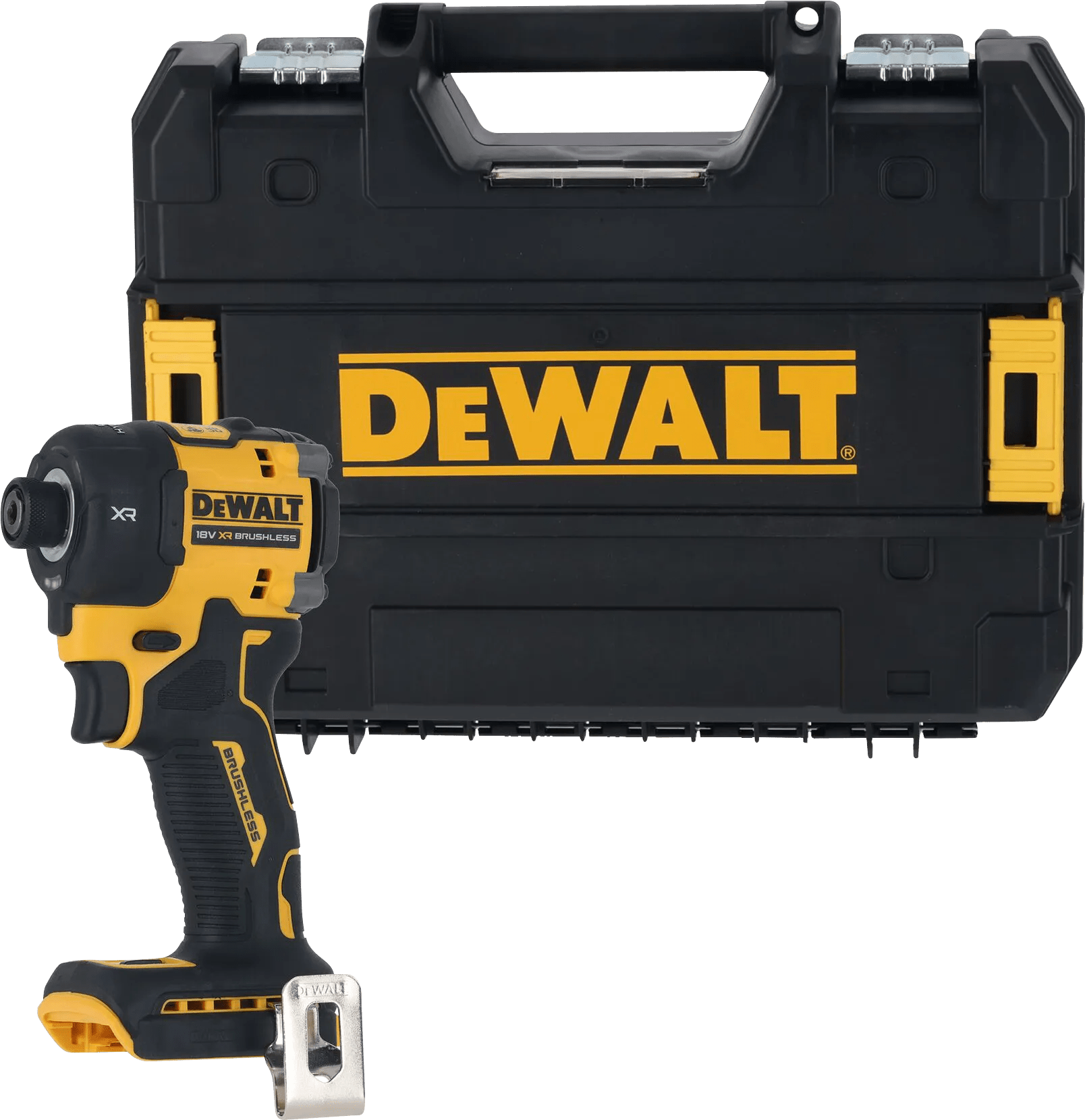 Met een maximaal koppel van 56 newtonmeter schroef je met de DeWalt DCF870NT-XJ (zonder accu) lange schroeven in (hard)hout. De binnenkant van de machine is oliegevuld. Hierdoor voel je trillingen minder in je arm en is het apparaat stiller dan andere DeWalt slagschroevendraaiers. Met de 2 versnellingen voorkom je schade, omdat je zelf kiest welke kracht je nodig hebt. Na gebruik berg je de machine op in de meegeleverde TSTAK koffer. Je klikt deze koffer gemakkelijk op andere koffers van dit systeem (niet meegeleverd). Zo til je alles in één keer. De slagschroevendraaier hoort bij het DeWalt XR 18V accu platform. Heb je al een accu van dit platform in huis? Dan gebruik je die ook op dit apparaat.