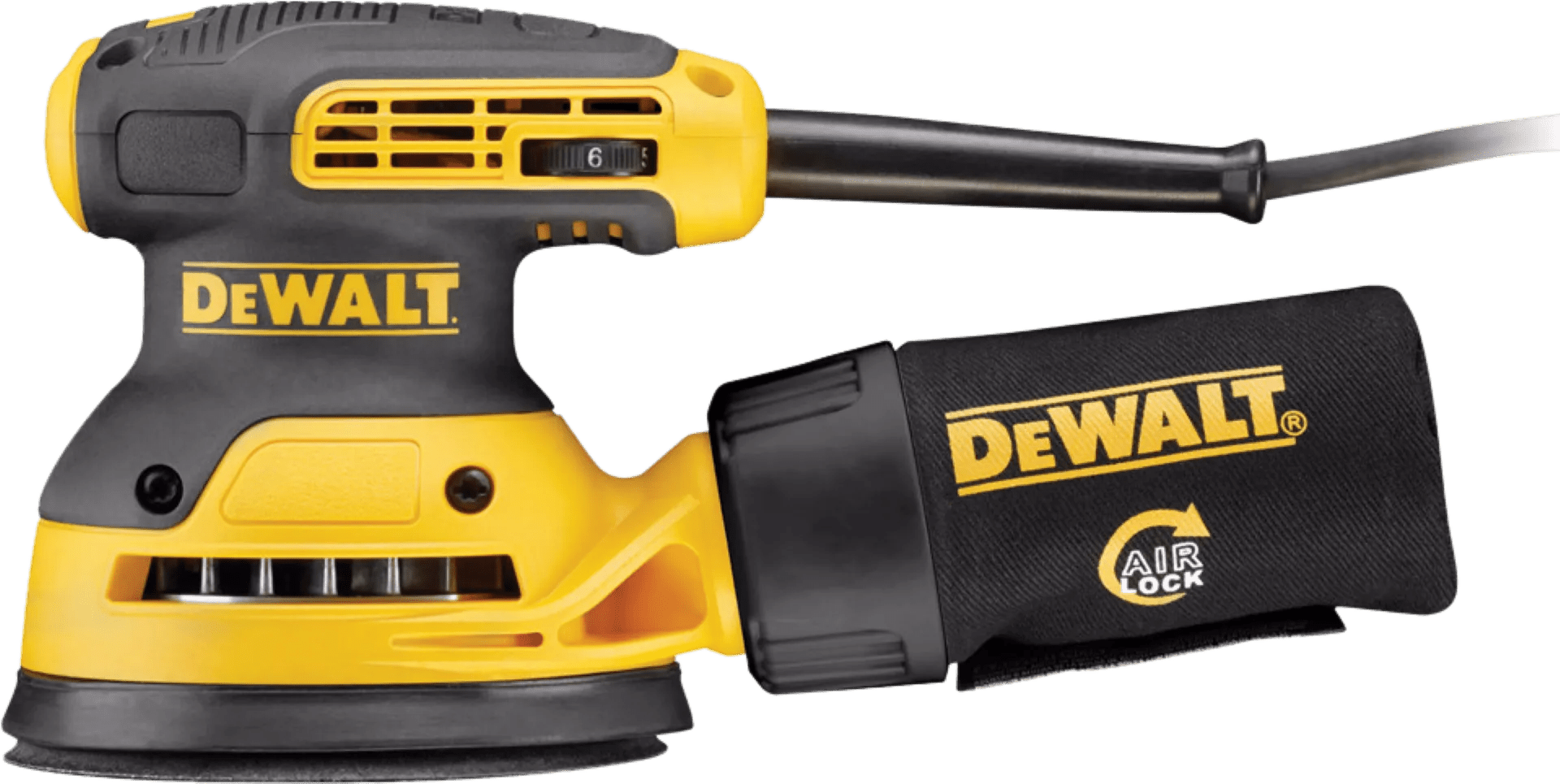 De DeWalt DWE6423-QS is een bedrade excenterschuurmachine die je gemakkelijk met één hand bedient. Hij is licht van gewicht, heeft een antislip handgreep en beperkt de vibraties. Hierdoor is ook langdurig schuren met de DWE6423-QS geen straf. De schuurzool heeft een diameter van 125 millimeter en maakt per minuut maximaal 12.000 schuurbewegingen. Minder kan ook, als de klus hierom vraagt. De schuursnelheid stel je dus zelf in. Tijdens het klussen komt er behoorlijk wat stof vrij, maar dit wordt meteen opgezogen in de meegeleverde stofzak.