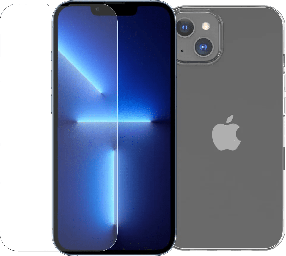 BlueBuilt Apple iPhone 14 Screenprotector Glas + BlueBuilt Soft Case Back Cover
