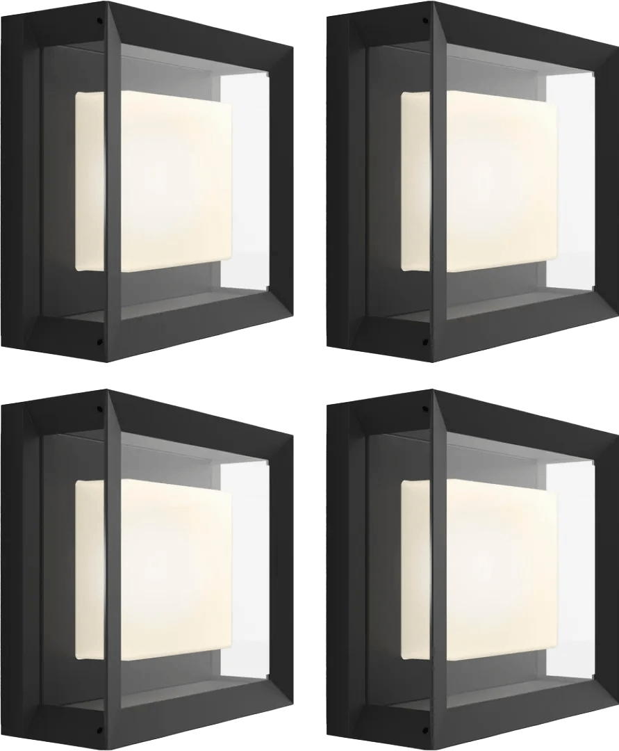 Met dit Philips Hue Econic buitenwandlamp 4-Pack breid je jouw Hue systeem uit met 4 lampen in de tuin. Koppel deze moderne wandlampen aan een Hue bridge en stel via de Hue app de perfecte sfeer in. Kies een warm licht als je wilt relaxen, of vrolijke kleurrijke verlichting tijdens een tuinfeest. De Hue Econic verlicht je tuin in alle kleuren van de regenboog. Je bestuurt de verlichting vanuit de Hue app. Daar stel je ook in dat de lampen automatisch inschakelen als je thuis komt. Of koppel de lampen aan zonsondergang, zodat je tuin altijd verlicht blijft.