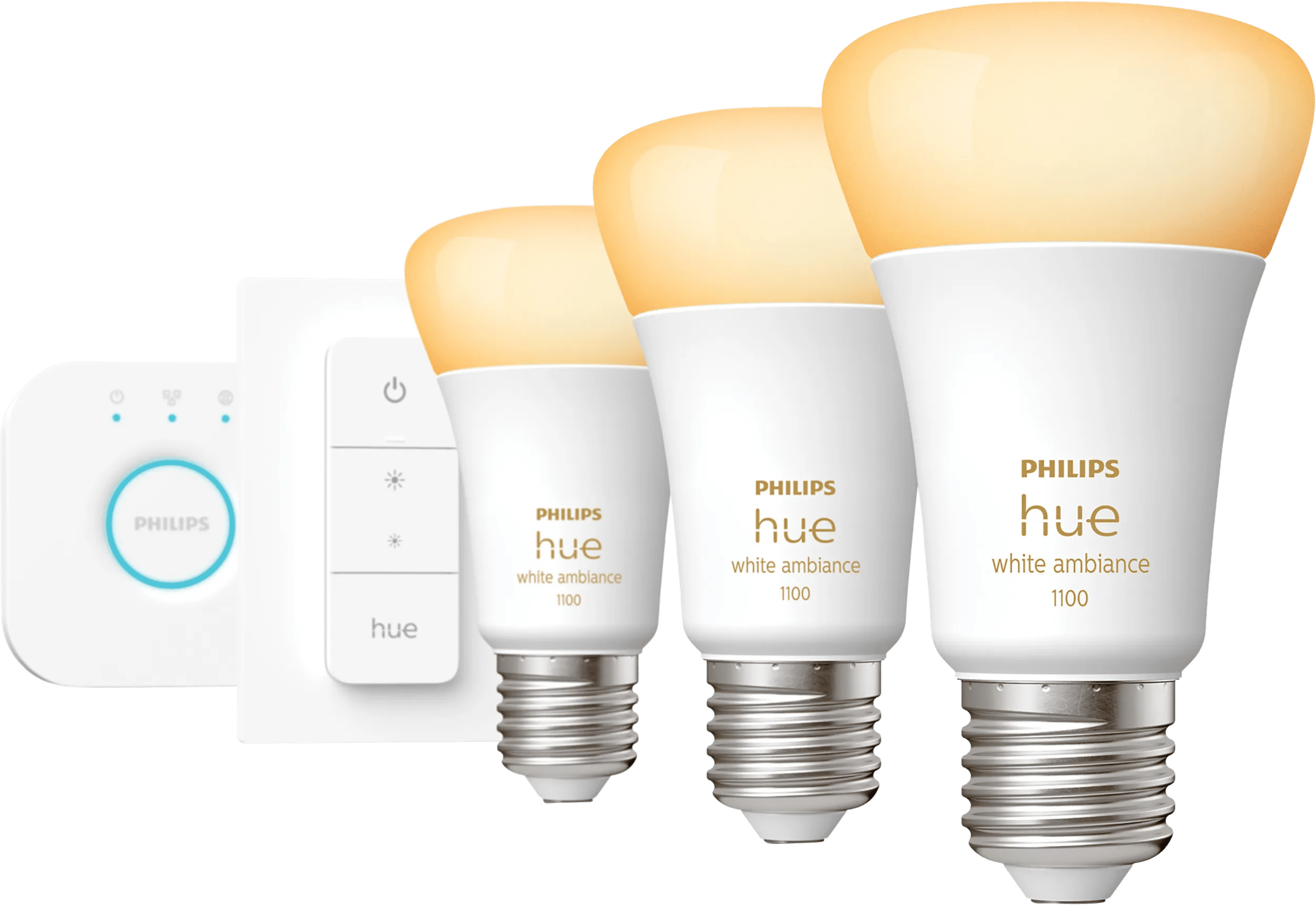 Philips Hue White Ambiance Starter Pack E27 met 3 lampen, dimmer + Bridge